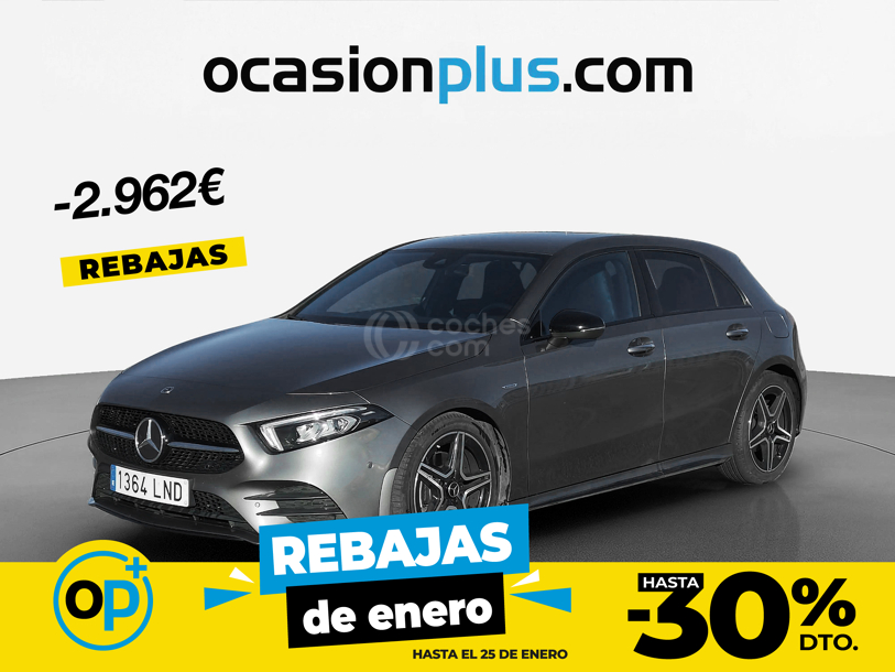 Equipamiento destacado: Paquete AMG, Tapicería cuero-alcántara, Asientos calefactables, Asientos deportivos, Car Play, Navegador, Cámara de marcha atrás, Faros delanteros led, Faros traseros led, Ayuda aparcamiento, Encendido automático de faros, Sensor de lluvia, Asistente de cambio de carril, Asistente de mantenimiento de carril, Sensor de presión de neumáticos, Start/Stop automático, Control de velocidad, Limitador de velocidad, Volante multifunción, Aire Acondicionado (Climatizador), Arranque por botón, Bluetooth, Isofix, Freno de estacionamiento eléctrico, Llantas de aleación (18").