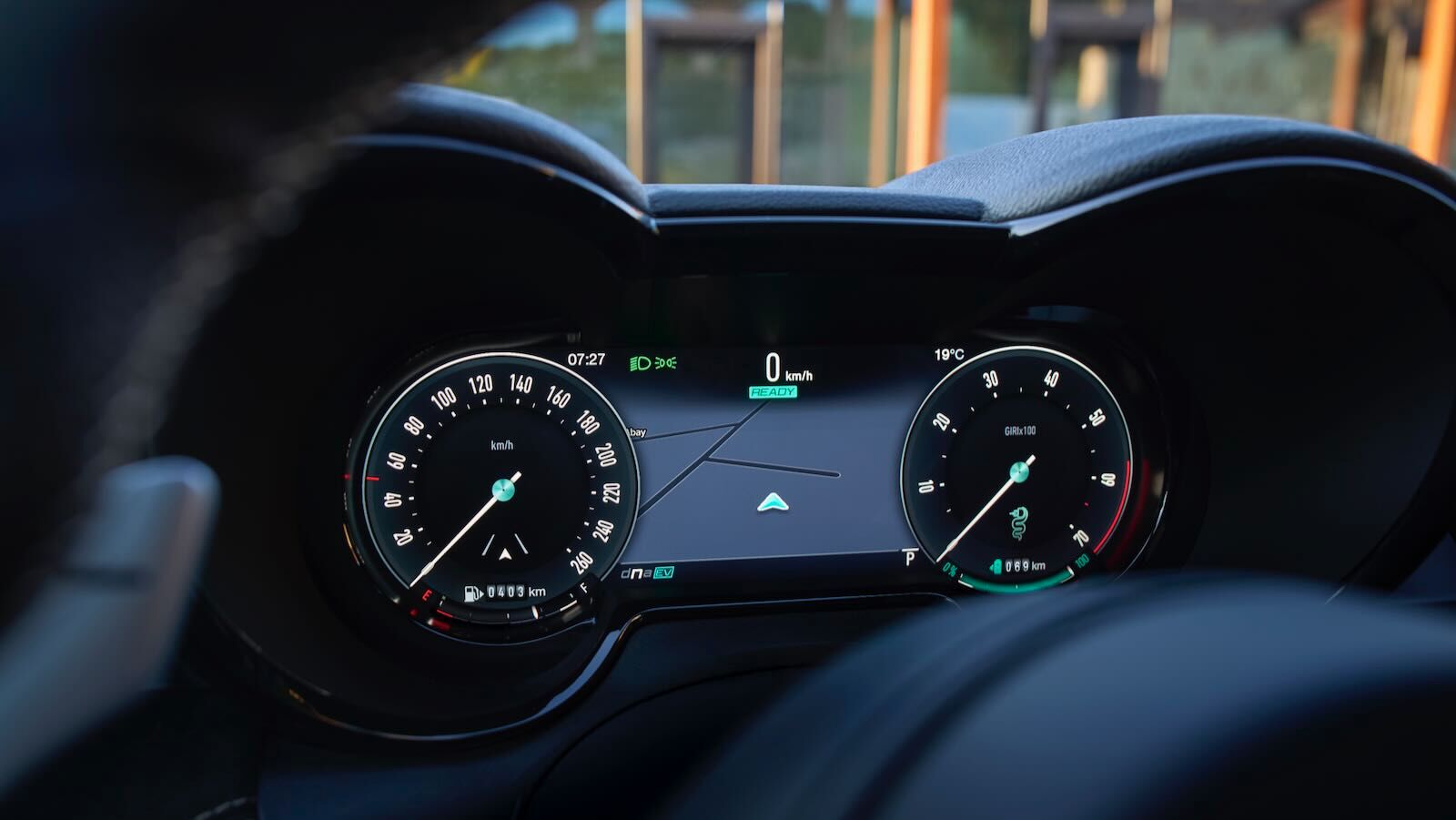 Los mandos principales mantienen accesos físicos simplificados para climatización y modos de conducción Alfa DNA (Efficiency, Natural, Dynamic). La calidad percibida y la ergonomía son destacables: el selector de cambio ahora es más funcional y los detalles en aluminio fresado (paddle shift) recuerdan el ADN deportivo de Alfa.