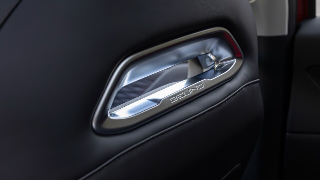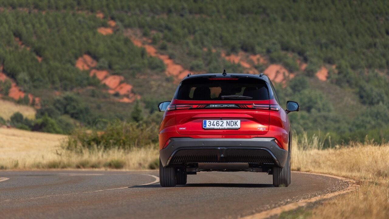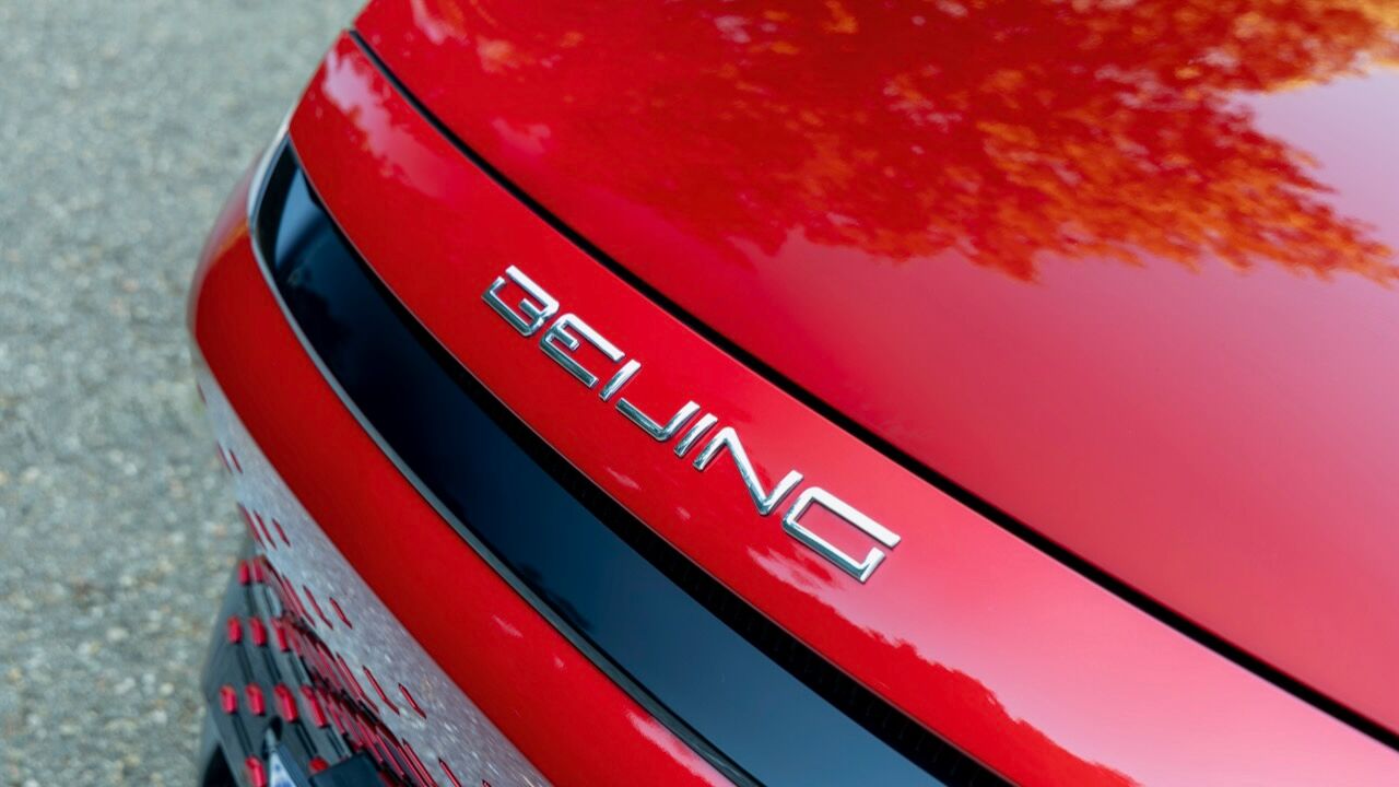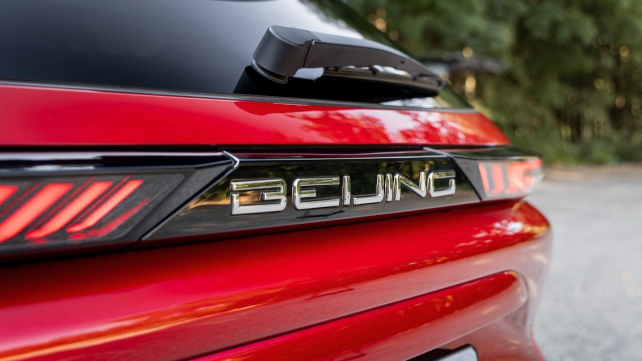 La zaga remata el conjunto con un alerón deportivo de dos piezas y unos pilotos unidos por una franja central oscura que incluye la inscripción de la ciudad de origen: «Beijing». Es curioso que esta firma no se distinga tanto por el logotipo como otras, pues en la parte delantera también repite la inscripción de la ciudad china.
