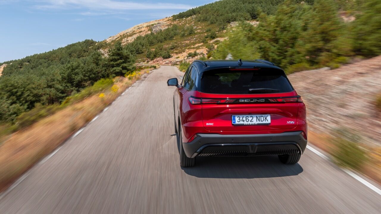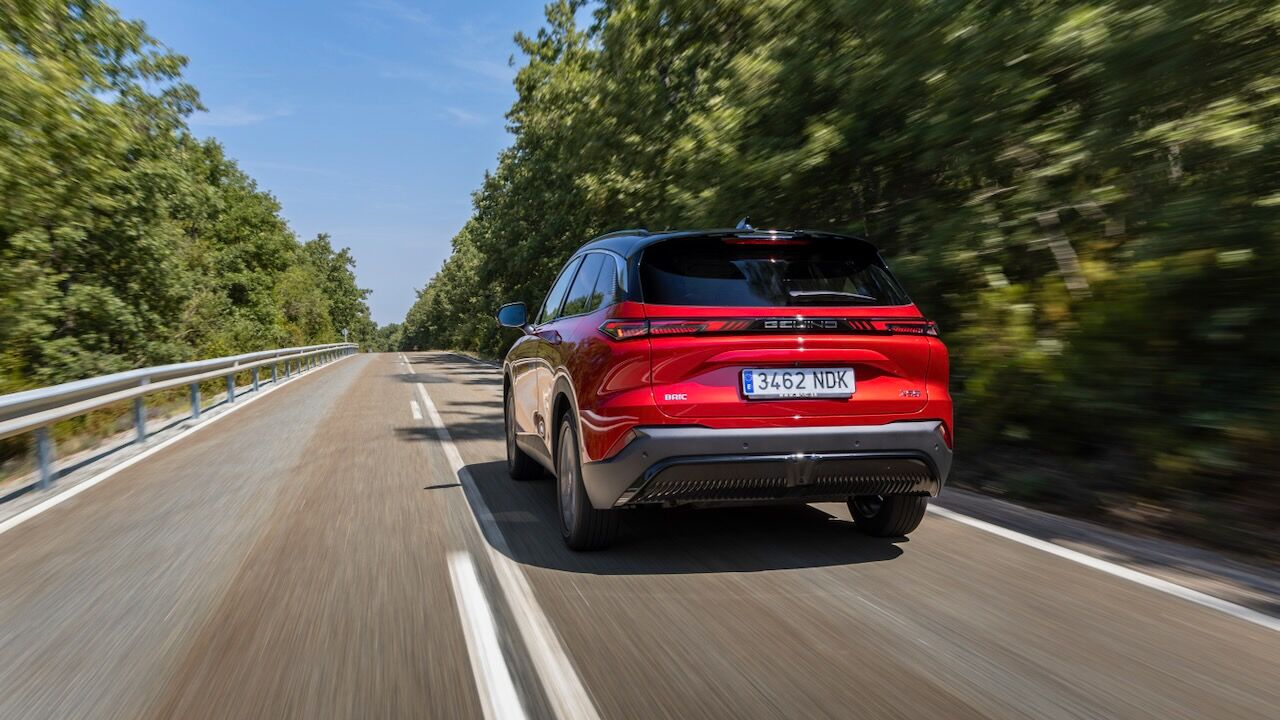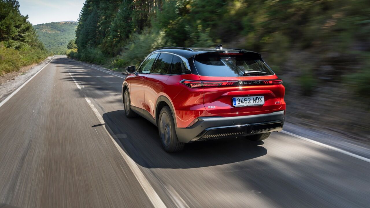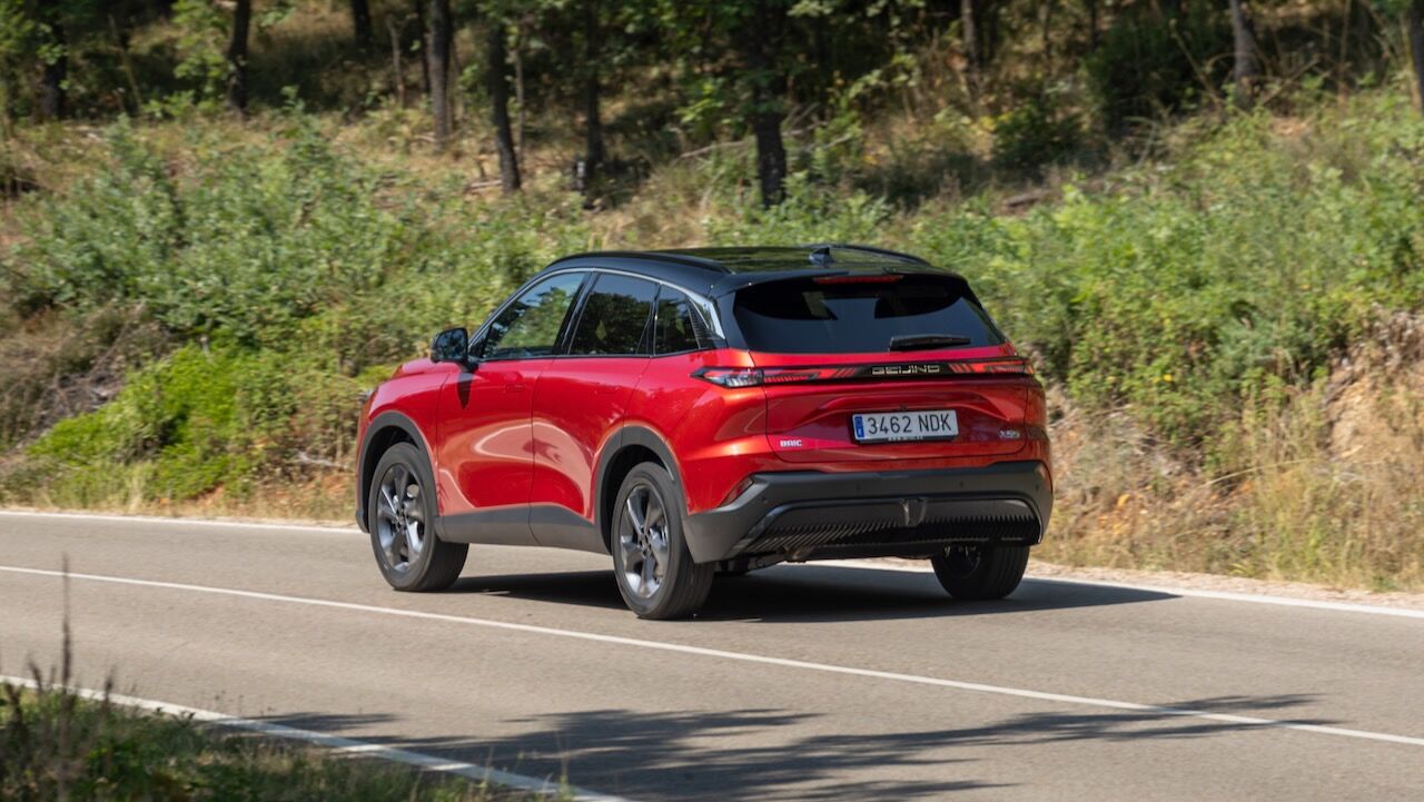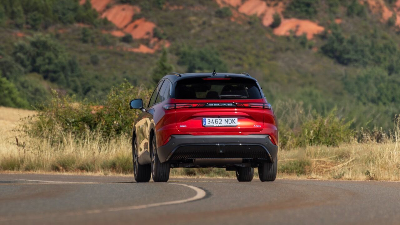 La zaga remata el conjunto con un alerón deportivo de dos piezas y unos pilotos unidos por una franja central oscura que incluye la inscripción de la ciudad de origen: «Beijing». Es curioso que esta firma no se distinga tanto por el logotipo como otras, pues en la parte delantera también repite la inscripción de la ciudad china.