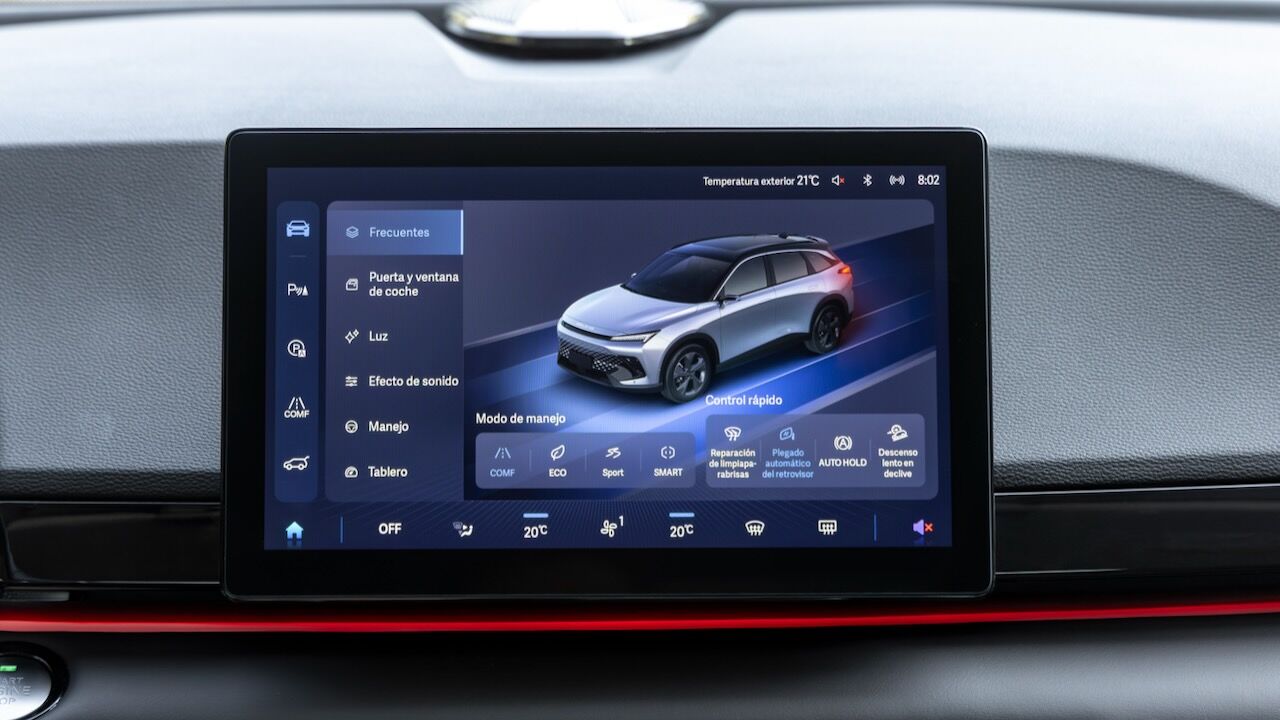 A nivel de prestaciones, el X55 es capaz de acelerar de 0 a 100 km/h en 7,8 segundos y alcanzar una velocidad máxima de 200 km/h. También registra un consumo medio homologado de 8,0 l/100 km bajo el ciclo WLTP. El conductor puede adaptar la respuesta del vehículo a través de cuatro modos de conducción seleccionables: Eco, Sport, Confort y Smart.