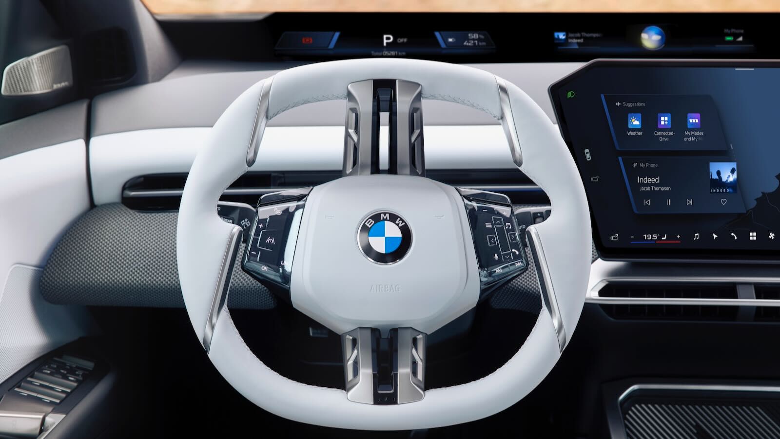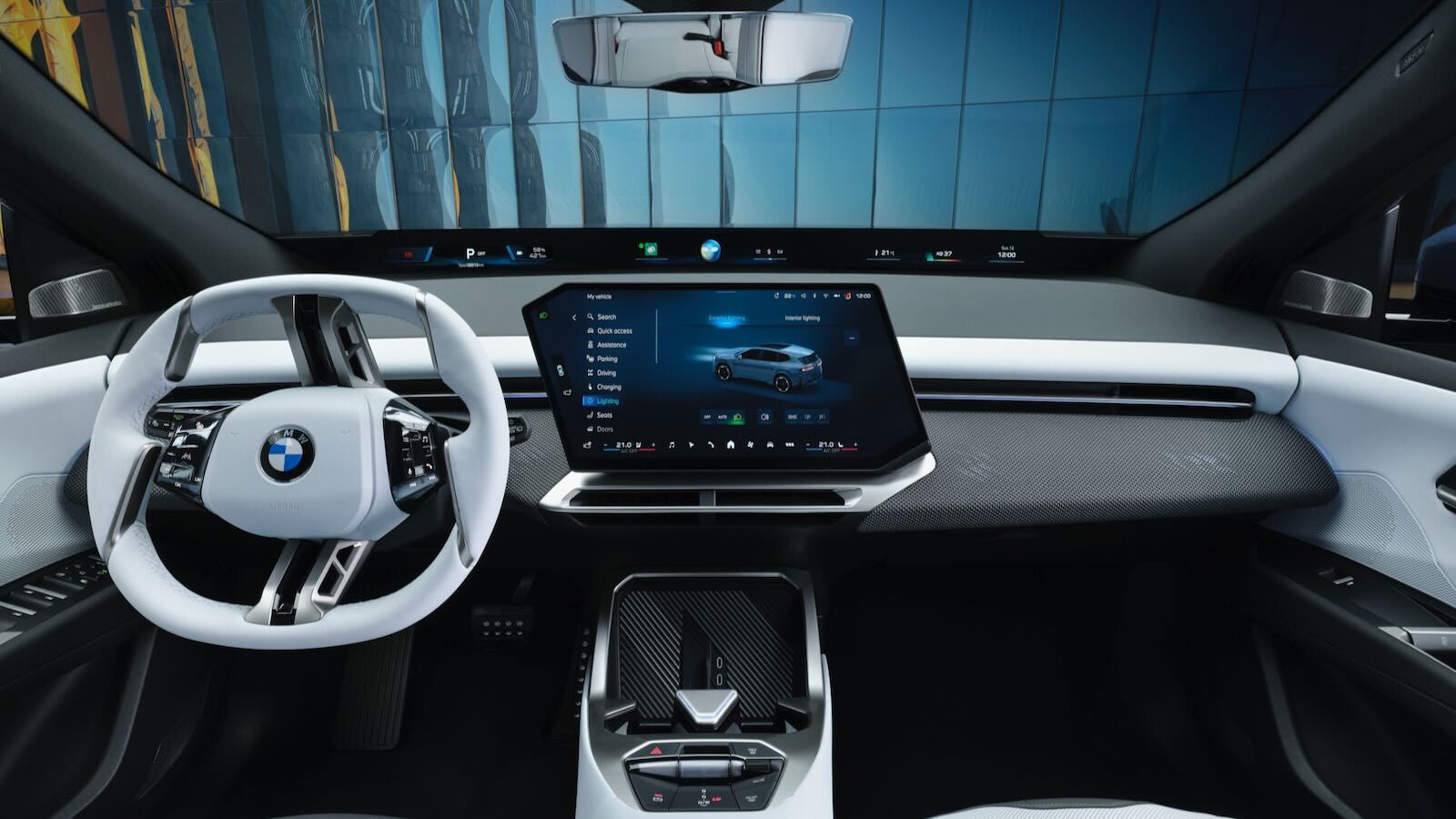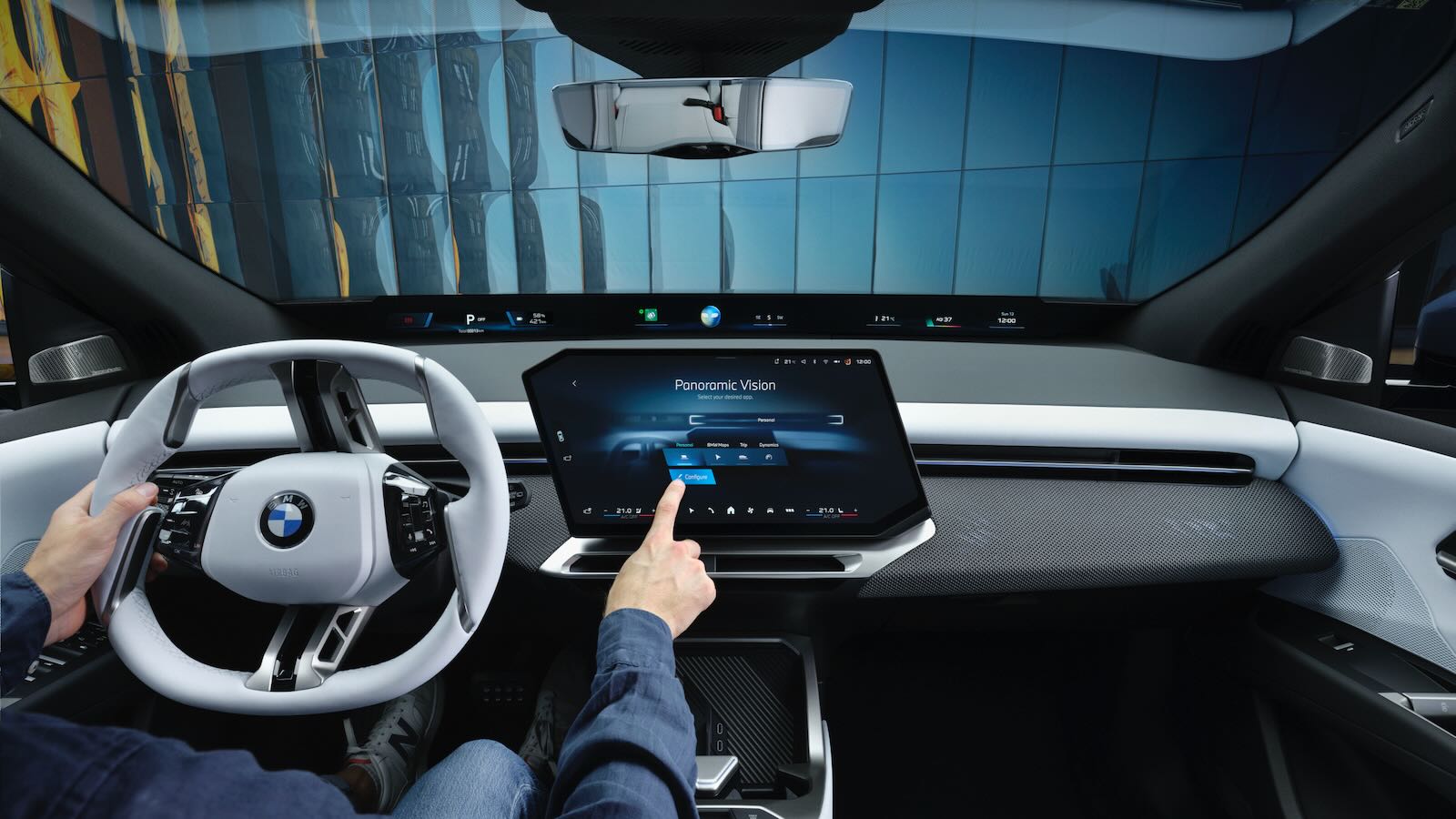 La gran revolución es el BMW Panoramic iDrive,. Este sistema elimina la pantalla de instrumentos tradicional y la sustituye por una proyección de información que se extiende de pilar A a pilar A en la base del parabrisas (BMW Panoramic Vision), visible para todos los ocupantes.