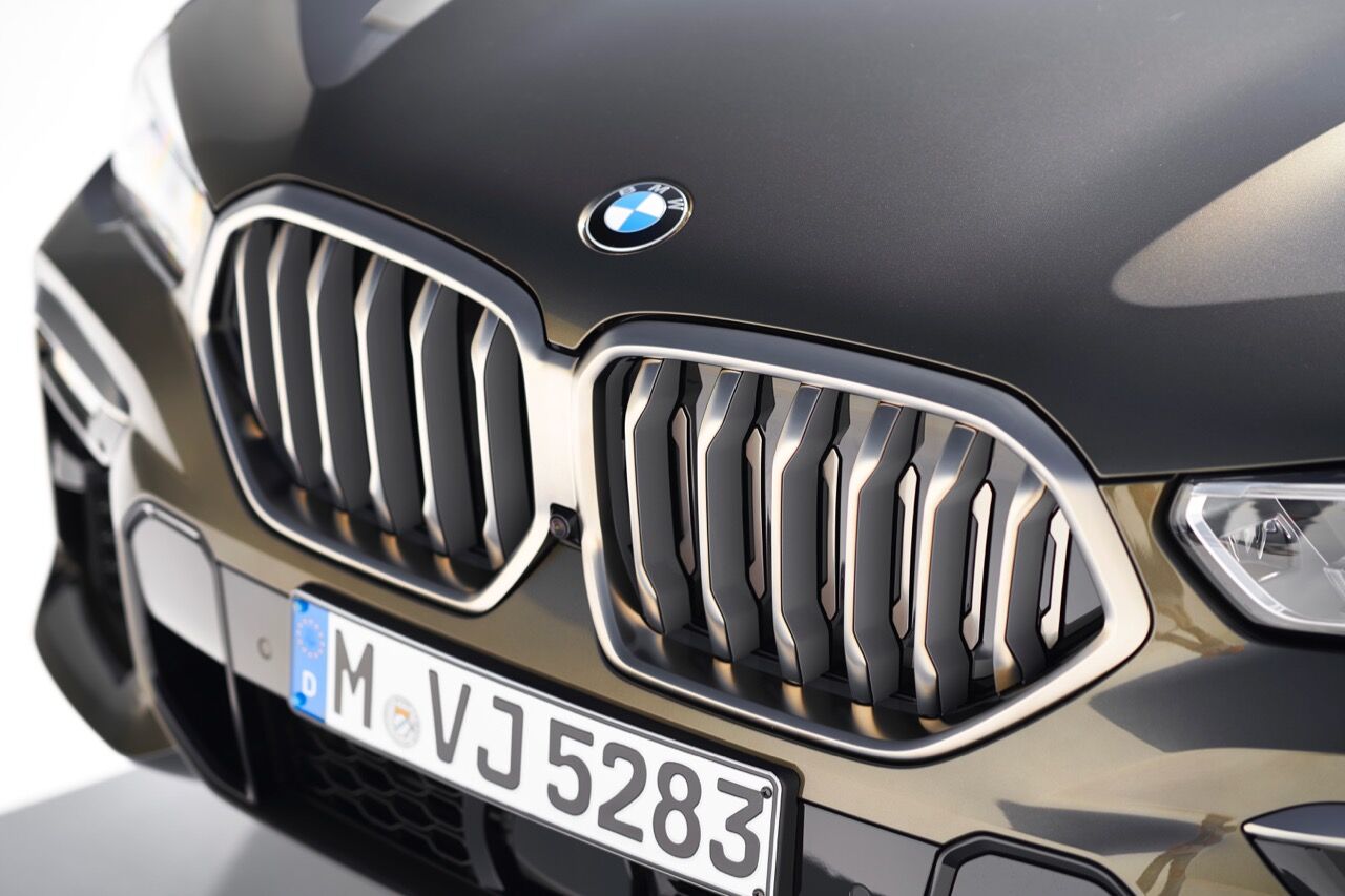 A nivel estético, el BMW X6 presenta una imagen más dinámica y afilada que antes. Lo que más destaca claramente es la parrilla delantera de los dos riñones, que es mayor en dimensiones y que además puede ir iluminada de forma opcional, un recurso muy llamativo que se utiliza por primera vez (y seguro que no será la última). A ambos lados hay unos faros alargados que pueden llevar tecnología Laserlight y la parte inferior del paragolpes toma un aspecto más agresiva y marcado.
