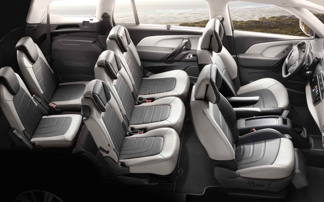 Comparte también con el su apuesta por un interior muy luminoso, gracias a sus 5,71 metros cuadrados de superficie acristalada, lo que favorece la sensación de espacio y la visibilidad. Como su hermano de cinco plazas, apuesta por la comodidad de los ocupantes sobre otras cosas y la modularidad del habitáculo, con una sengunda fila, formada por asientos independientes, que puede desplazarse longitudinalmente y plegarse. Los dos asientos de la tercera fila en el Grand C4 SpaceTourer son escamoteables.