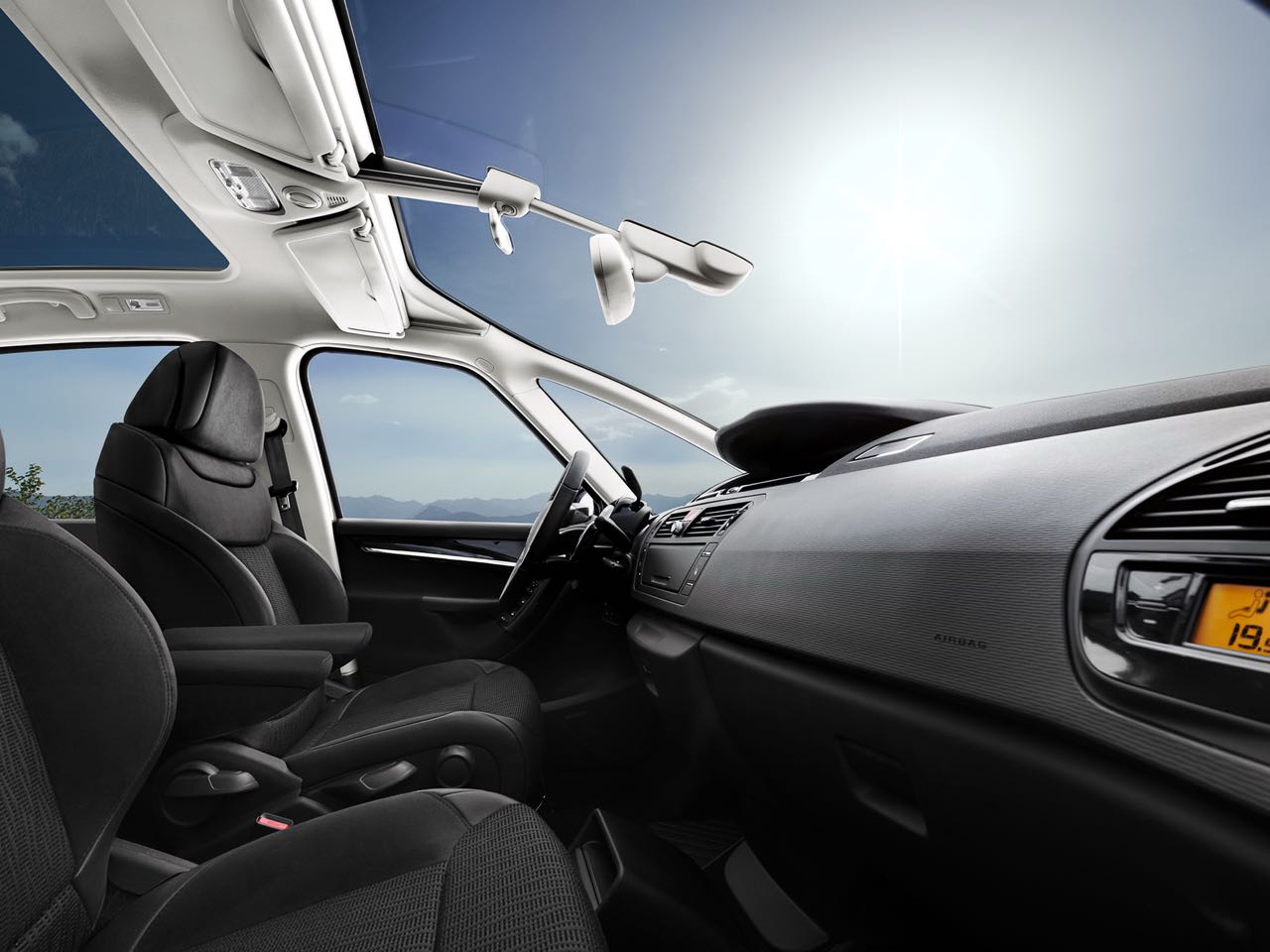 - SX: Agrega luces diurnas LED, sensor de luz y de lluvia, antinieblas delanteros, parabrisas atérmico, pack Look (paragolpes y molduras en el color de la carrocería), llantas de aleación de 16 pulgadas, barras de techo... Dentro tenemos volante forrado en cuero, tapizado Anjou climatizador cuadrizona, Connecting Box (Bluetooth + USB + Aux-in), apoyacodos delantero, las bandejas de tipo avión las cortinillas de la segunda fila o el Modubox (carrito plegable, sólo para el Grand C4 Picasso).