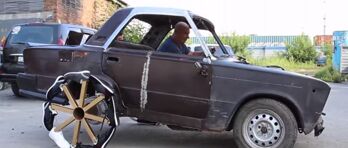 Este ruso le ha puesto ruedas con zapatillas al coche. Y funciona.