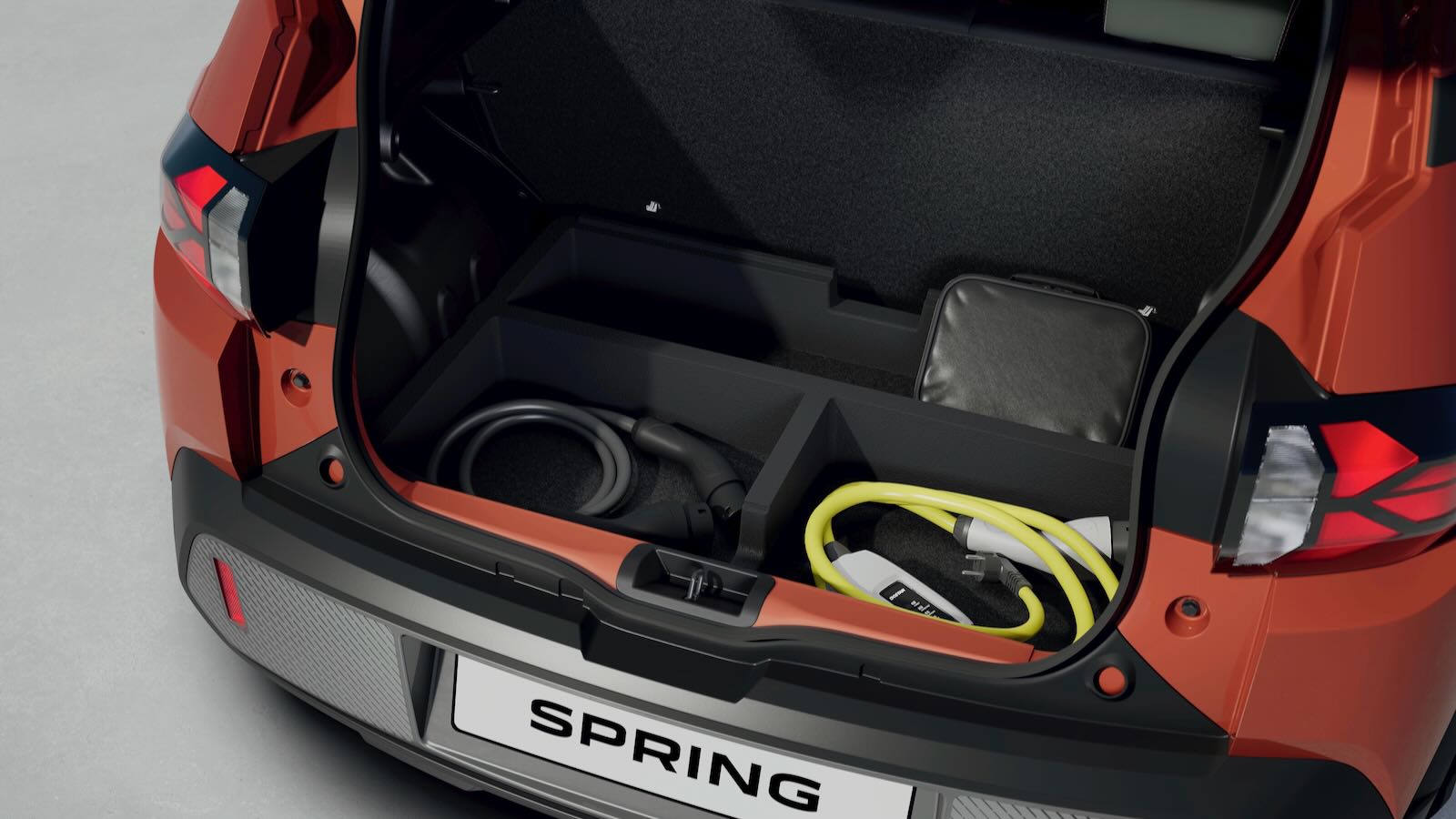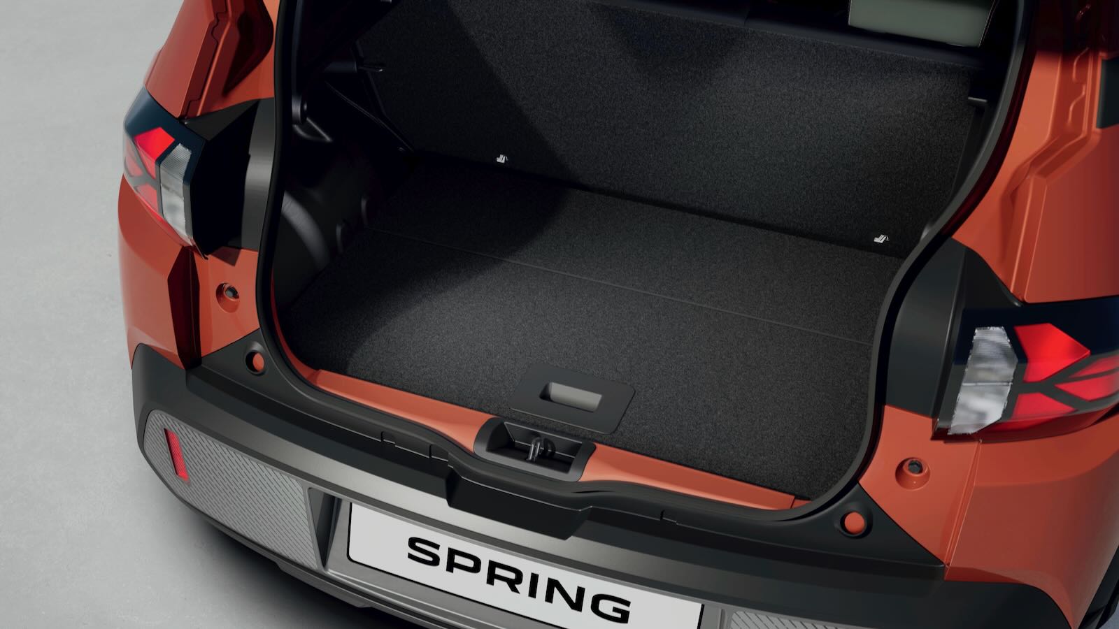 Fiel a la filosofía de la marca, el interior del Spring prioriza la funcionalidad y el espacio inteligente. El habitáculo ofrece numerosos compartimentos de almacenamiento que suman más de 32 litros, incluyendo guantera, consola central y espacios en las puertas. Pero su gran baza sigue siendo la capacidad de maletero de 308 litros que alcanza los 1.004 litros con los asientos traseros abatidos, rivalizando con utilitarios.