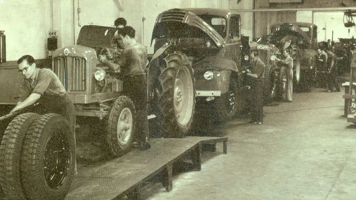 Ebro nació con la sede central en Barcelona, que es donde llevaba la Ford Motor Company desde 1923, aunque también tuvo sedes en Madrid, en Ávila y unas instalaciones para maquinaria agrícola en Noáin (Navarra). Porque los comienzos de la marca fueron para hacer principalmente tractores y camiones. Los primeros estaban basados en el Ford Thames Trader, teniendo esa curiosa conexión entre el río británico y el español. Aunque Motor Ibérica hubiera sido nacionalizada, los vínculos con Ford siguieron muy vivos.