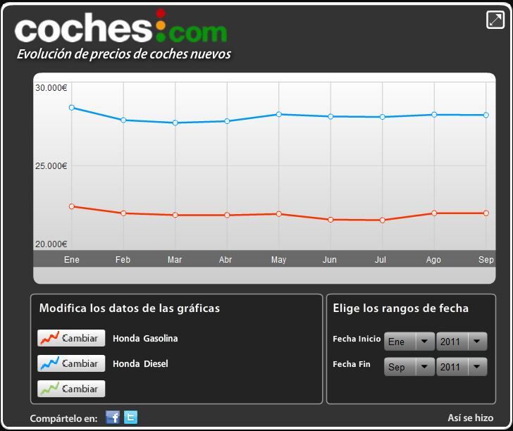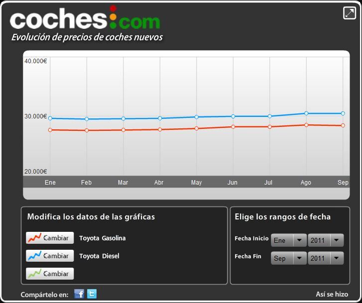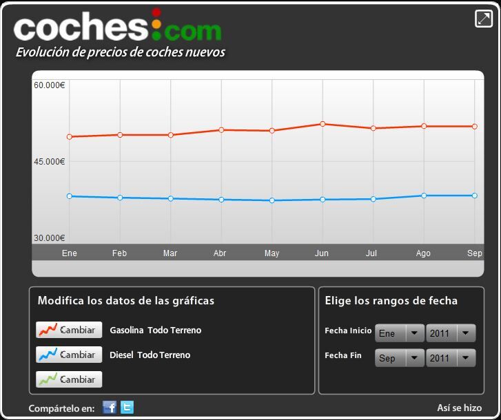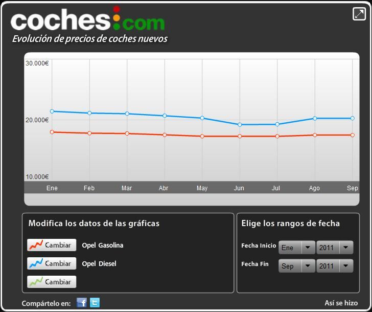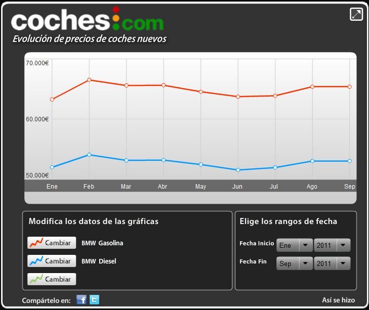 Gráficos de la evolución de precios por marca (puedes analizar cualquier modelo y segmento con nuestra aplicación única en España):