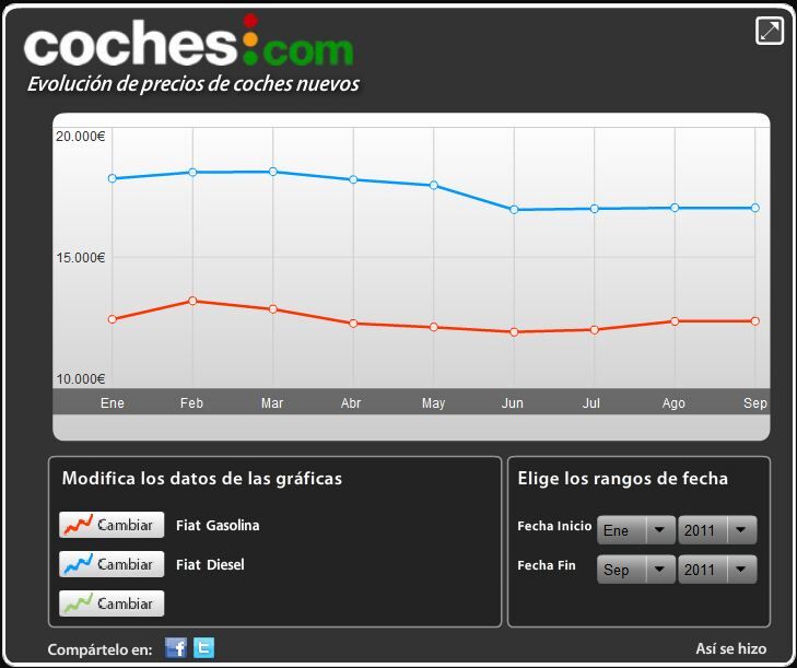 Parece que el resto de marcas del grupo copian la estrategia. Fiat, que ha bajado un 37% sus ventas en los 8 primeros meses del año respecto a 2010, marcó los precios más bajos de sus vehículos diésel y gasolina en junio y las subidas son mínimas.