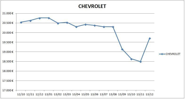 Nos ha sorprendio Chevrolet por segunda ocasión en una semana. Tras anunciar su despedida de Europa, vemos que sus precios medios suben casi mil euros en diciembre, aunque continúan estando entre los más bajos del año. De todos modos, es un gran momento para comprarse un Chevrolet Trax, el pequeño SUV de la marca, y hay grandes ofertas de Chevrolet nuevos entre los Captiva y el Aveo.