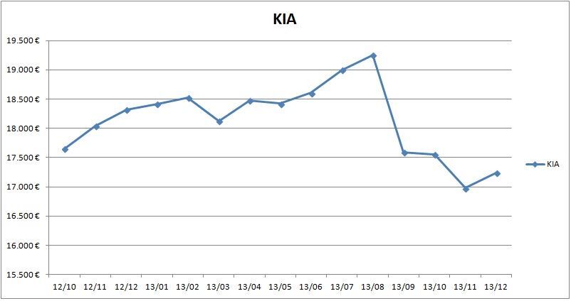 Si los Kia son una gran opción de compra por su relación calidad-precio, en estos meses a final de 2013, todavía más. Las mejores ofertas de Kia nuevo del año las encontrarás en el pequeño Picanto (hasta 26% de descuento), el Kia Carens (un monovolumen compacto que probamos, ahora con hasta un 22% de rebaja) y en su berlina, el Kia Optima, en mínimos anuales. Los precios en concesionario de los más vendidos, el Cee´d, Rio y Sportage han tenido un ligero repunte el último trimestre.