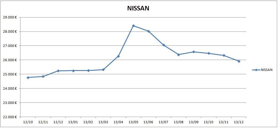 La subida de precios medios en la marca japonesa que observamos hasta mayo fue debida a la incorporación de nuevos modelos y a cambios en la gama de comerciales. Desde esos precios máximos no dejan de bajar los precios y, si bien están lejos .
