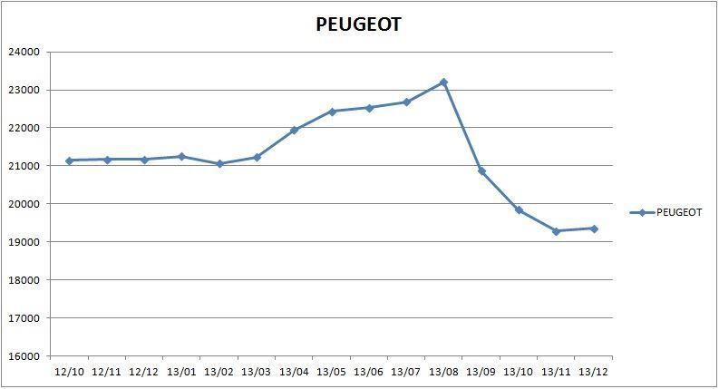 Si la compra de coches se produjese como el parqué de la bolsa, los brokers se desgañitarían gritando «¡COMPRA!». Y es que sus precios medios son, con mucho, los más bajos del año. Pero hay algún dato que objetar: la bajada es mayor en los modelos más grandes de la marca de león (Peugeot 508, 3008. 5008 y RCZ). Luego, cuando uno observa detenidamente las ofertas de Peugeot a lo largo del año en sus modelos más vendidos, como el 208, el nuevo 308 o el renovado 2008 observamos que tienen buenos precios, pero muy similares a meses anteriores.