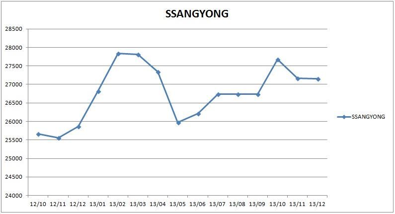 Idas y venidas en las ofertas de Ssangyong a lo largo del año. Tras tener su gama unos precios muy interesantes en mayo, han ido escalando posiciones hasta octubre, si bien ahora están más moderados. El Rodius (ver nuestra prueba del Ssangyong Rodius) es el gran protagonista de este descenso de precios tras lanzarse el nuevo modelo a mediados de año.