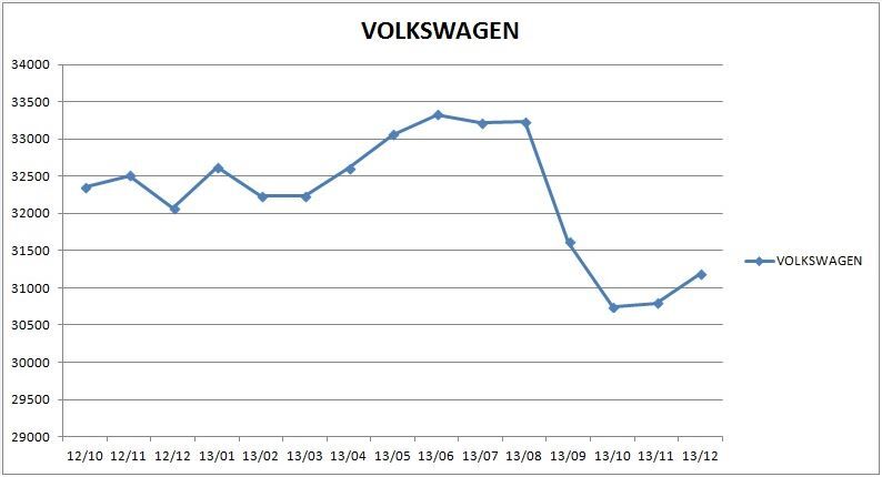 Volkswagen domina las listas de ventas en 2013 como marca con más matriculaciones con passo firme. A finales de verano parece que tomaron la determinación de lograr el primer puesto a finales de año y comenzaron campañas agresivas de descuentos, por lo que resulta fácil localizar ofertas de Volkswagen en sus concesionarios. Pero cuidado, porque aunque su icono, el Golf, tiene descuentos, resulta 800 euros más caro comprarlo ahora que en noviembre. Los mayores descuentos los localizarás en coches de capricho como el Volkswagen Eos o el Scirocco. Tanto los Up! como el Polo mantienen los prrecios de los últimos meses.