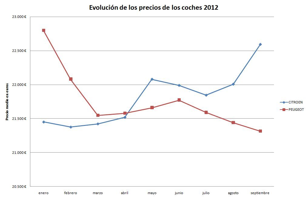 Galería de gráficos con la evolución general de cada marca de enero a septiembre de 2012:
