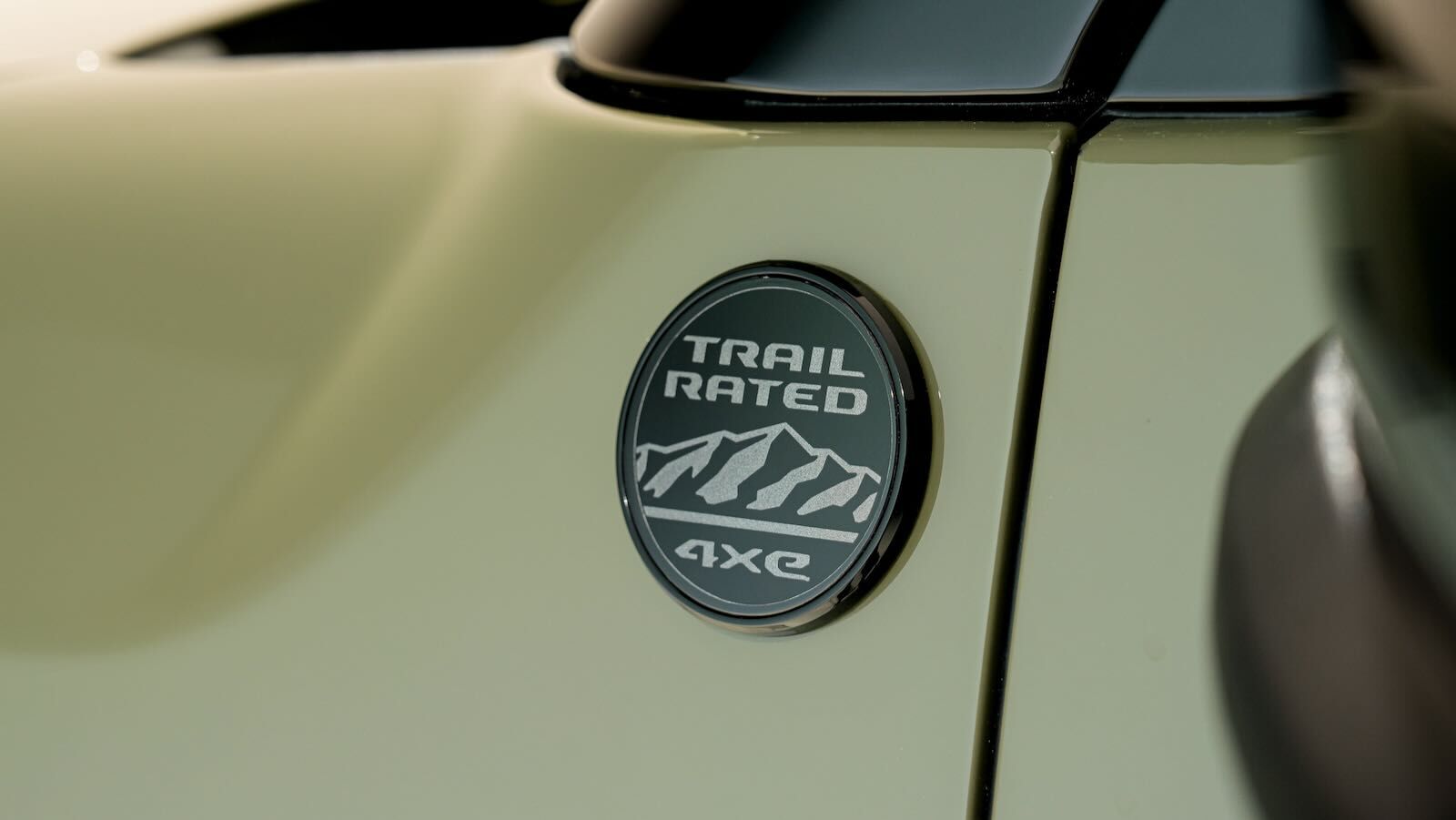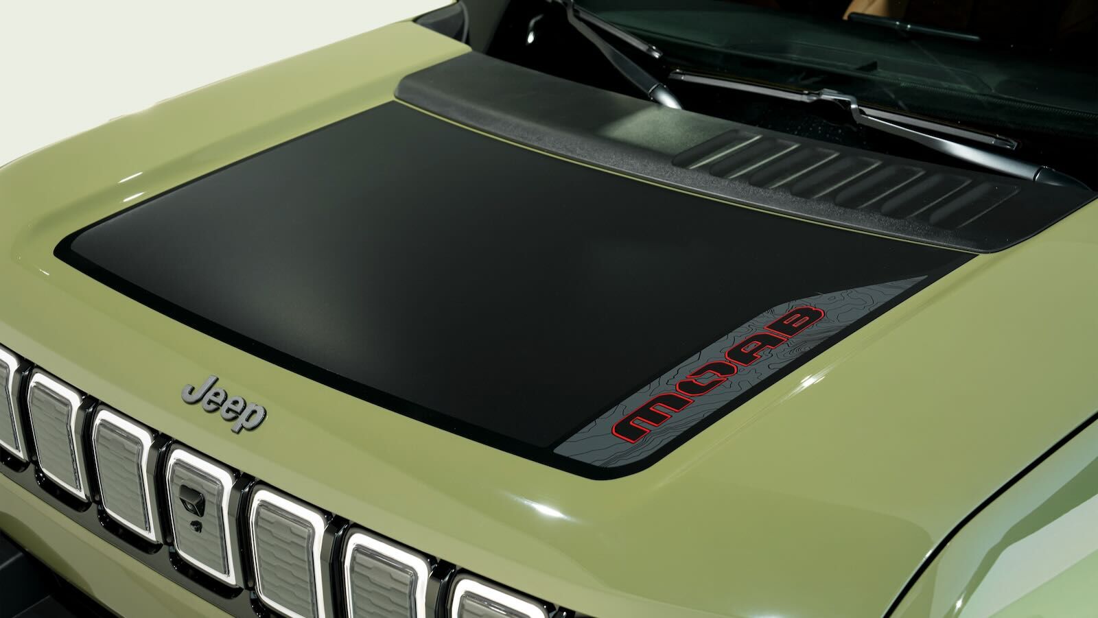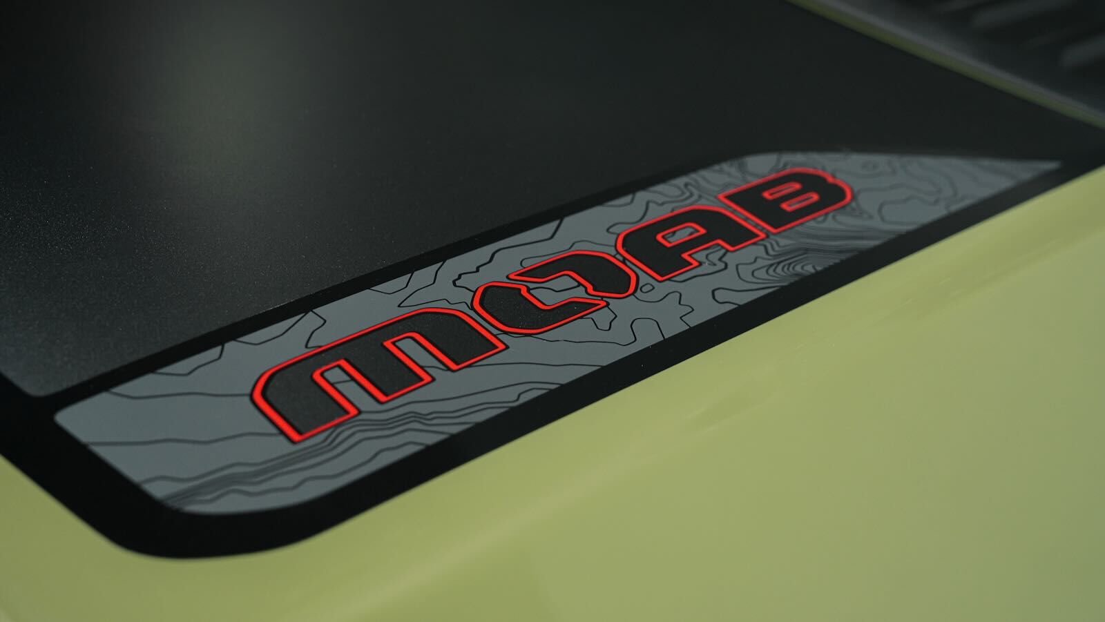 - Moab (solo EE.UU. y Canadá): Neumáticos off-road de 33 pulgadas, estribos, placas protectoras, diferencial trasero bloqueable, ángulos offroad mejorados (ataque 34°, salida 34,5° y ventral 23,5°), personalización color Joshua Tree y materiales exclusivos.