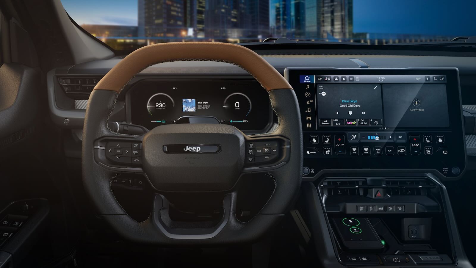 - Recon (estándar): Doble pantalla digital (12,3”+14,5”), UConnect 5, climatizador bizona digital, tracción 4×4, Alpine sound system, asistente Alexa y todas las ayudas a la conducción.