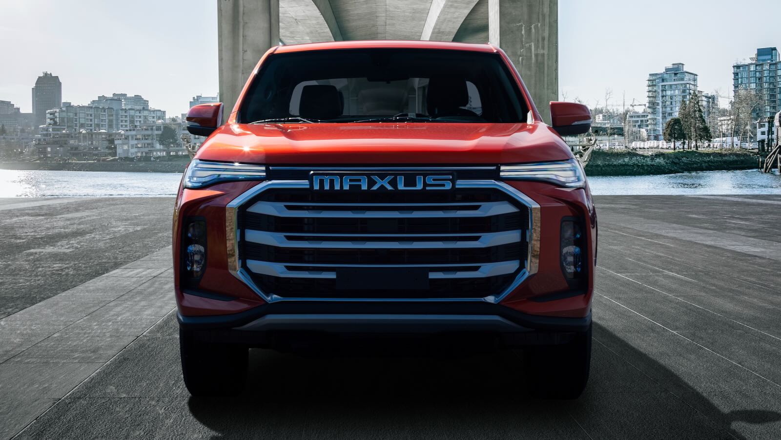El Maxus T90 EV tiene un diseño robusto con algún guiño moderno. La vista frontal la domina una enorme parrilla octogonal de lamas cromadas que se extiende hasta el borde inferior del paragolpes. En la parte superior se encuentran las luces de circulación diurna, con las ópticas principales (halógenas) en los extremos del paragolpes, en una disposición vertical.