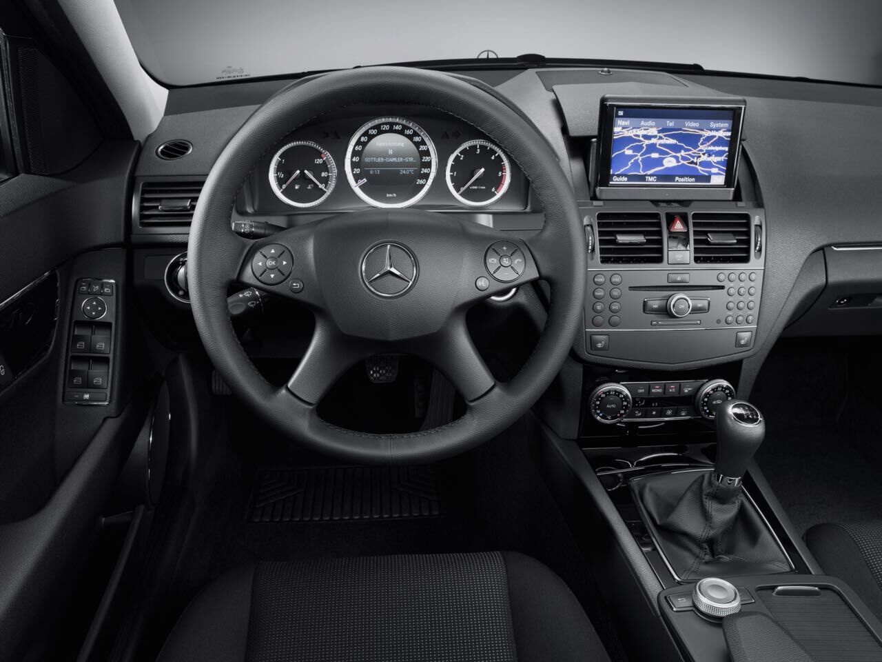 El Mercedes Clase C 2007 es una berlina media muy confortable y a ello contribuyen los asientos delanteros y el puesto de conducción en general.