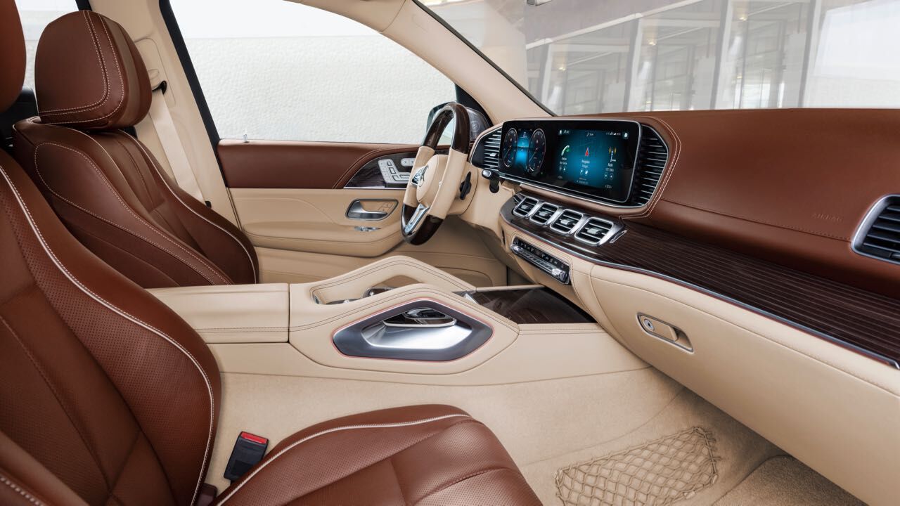 Mercedes-Maybach GLS 600 4MATIC; Interieur; Kraftstoffverbrauch kombiniert: 12,0-11,7 l/100 km; CO2-Emissionen kombiniert: 273-266 g/km**Angaben zum Kraftstoffverbrauch und CO2-Emissionen sind vorläufig und wurden vom Technischen Dienst für das Zertifizierungsverfahren nach Maßgabe des WLTP-Prüfverfahrens ermittelt und in NEFZ-Werte korreliert. Eine EG-Typgenehmigung und Konformitätsbescheinigung mit amtlichen Werten liegen noch nicht vor. Abweichungen zwischen den Angaben und den amtlichen Werten sind möglich.