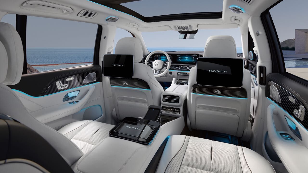 Mercedes-Maybach GLS 600 4MATIC, interior; combined fuel consumption: 12.0-11.7 l/100 km; combined CO2 emissions: 273-266 g/km**Figures for fuel consumption and CO2 emissions are provisional and were determined by the Technical Service for the certification process in accordance with the WLTP test method and correlated into NEDC figures. EC type approval and a certificate of conformity with official figures are not yet available. Differences between the stated figures and the official figures are possible.