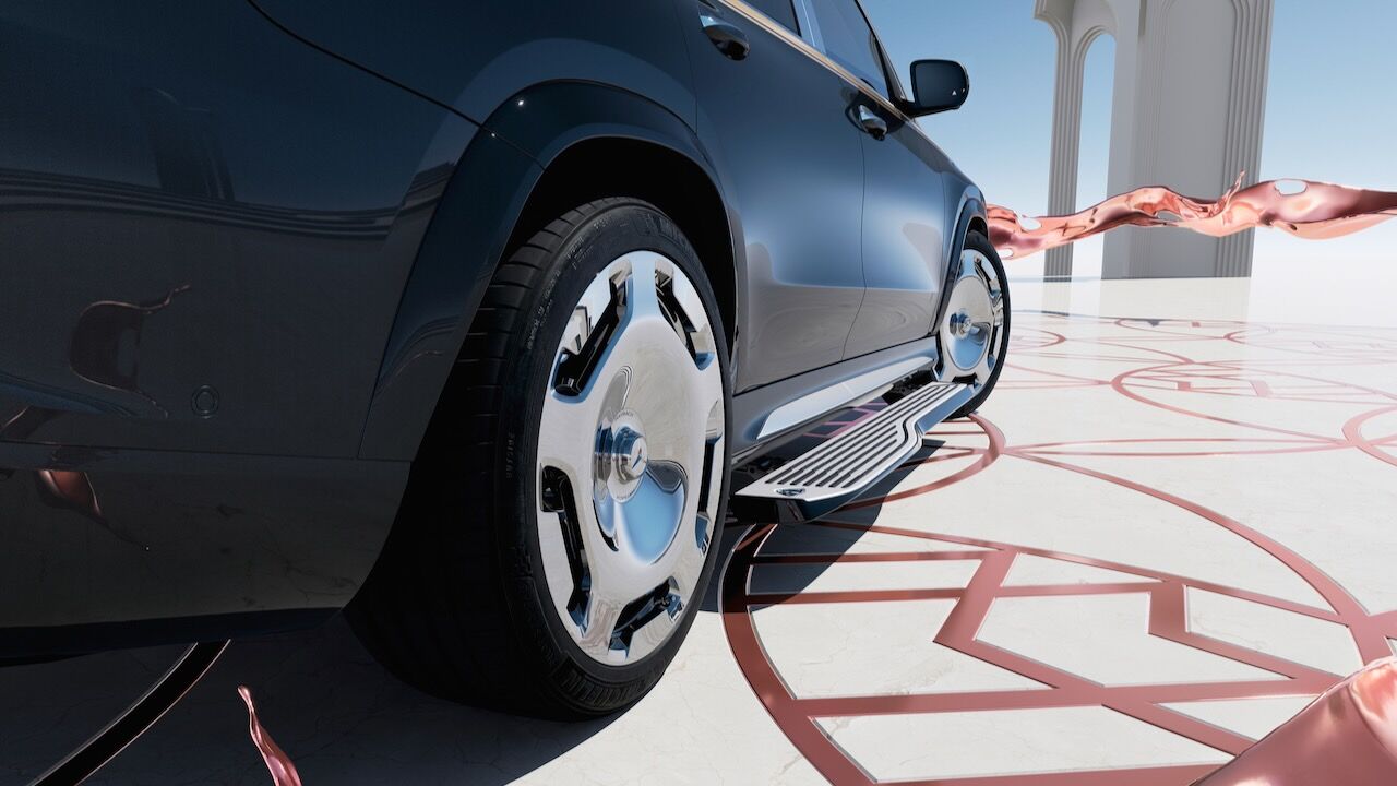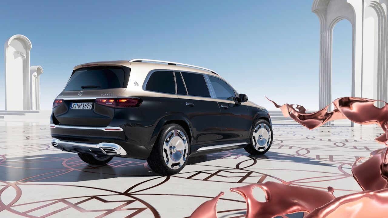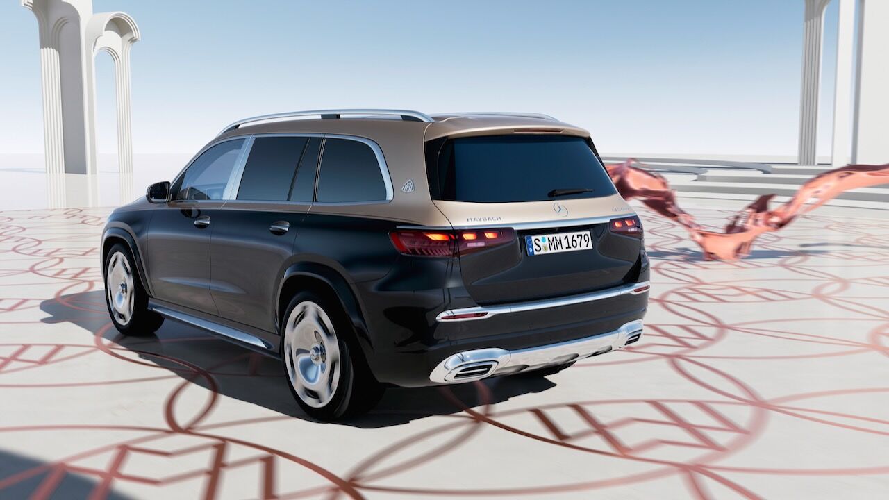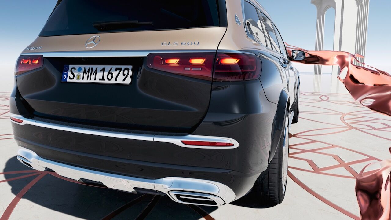 Las diferencias a nivel estético en este modelo son más que evidentes. Se distingue del GLS convencional gracias a la superlativa parrilla con sus barras cromadas verticales y la inscripción «Maybach» en el borde superior. Los cromados están presentes en varios puntos de la carrocería, incluyendo las defensas delanteras y traseras, los marcos de las ventanillas, las taloneras e incluso las barras del techo. Las enormes llantas forjadas de 23 pulgadas también pueden tener un acabado similar, siempre con ese diseño tan característico de la firma de lujo.