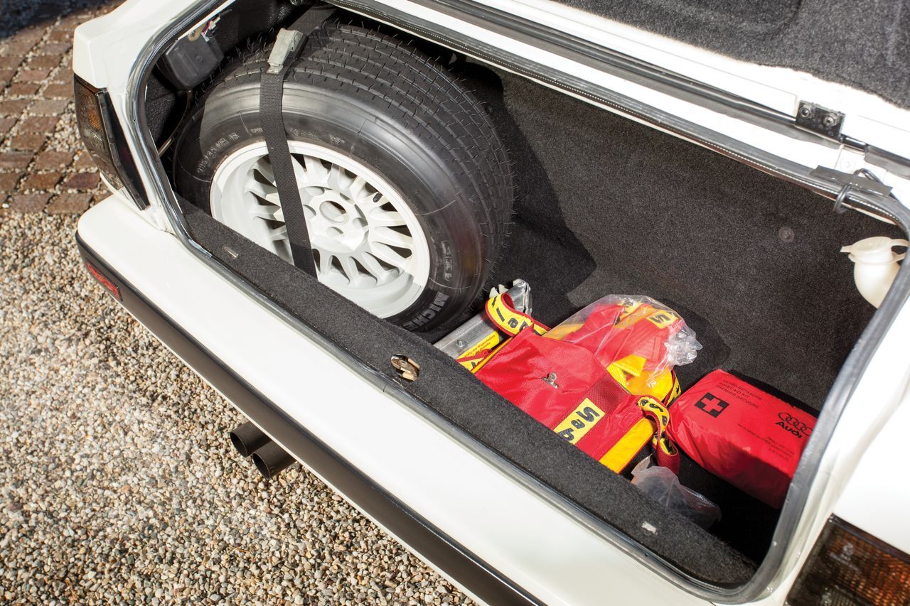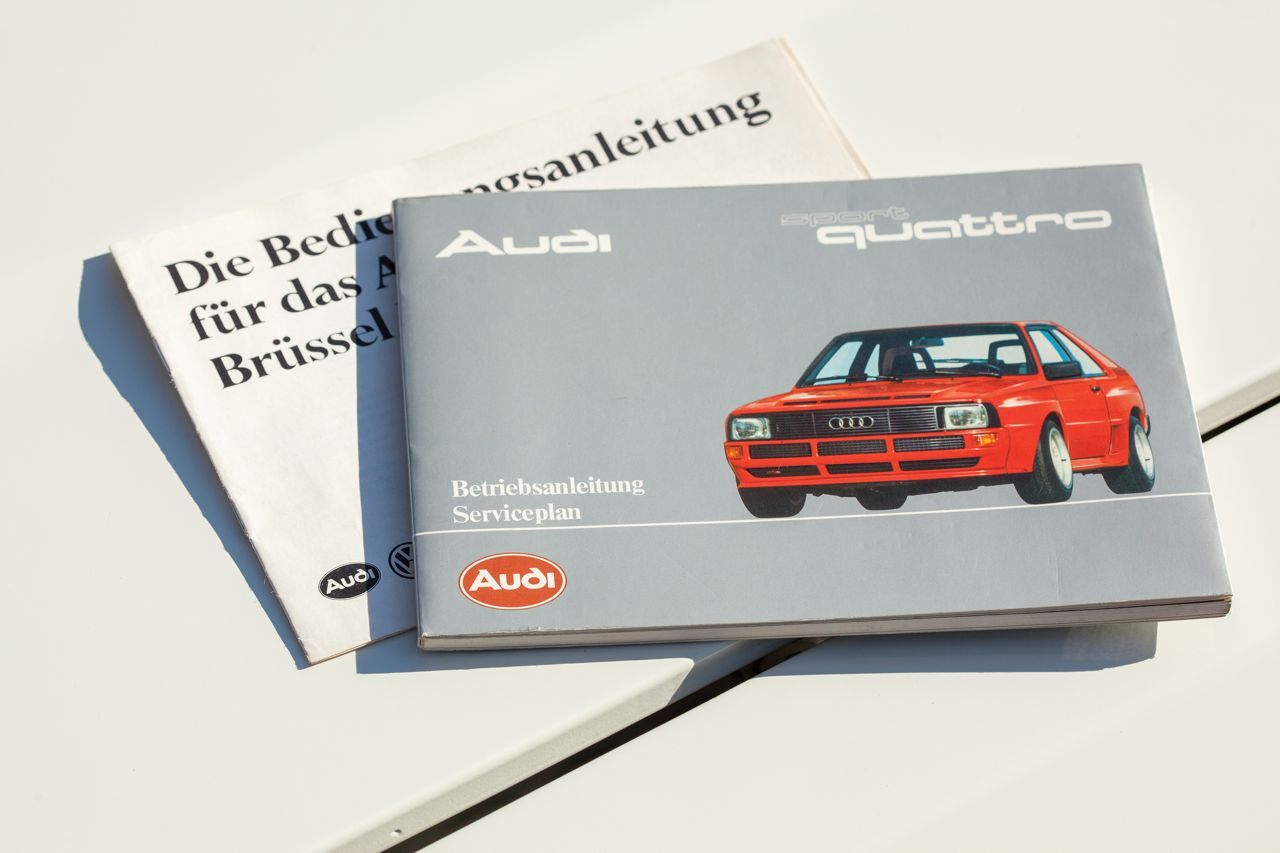 Puntado en blanco, este coche con número de chassis WAUZZZ85ZEA905147 tiene el interior de cuero gris y asientos deportivos Recaro forrados de tela, y cuenta con las llantas de aleación blancas originales de fábrica. Se entrega recién revisado por Audi, con el kit de herramientas originales, el manual del propietario, la radio instalada con manual y un juego extra de cinturones de seguridad de carreras.