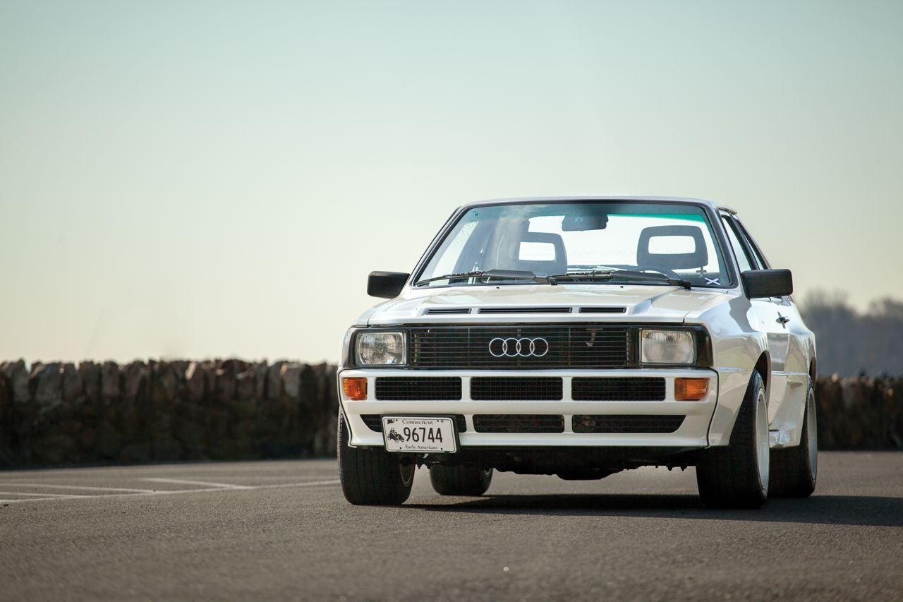 El Grupo B permitió que Audi compitiese con su todavía nuevo sistema Quattro de tracción total, toda una garantía a la hora de afrontar variadas superficies etapa rally. El sistema de tracción total permantente debutó en 1980 el Quattro Coupe (un coche basado en el Audi 80) y pronto se convirtió en uno de los rasgos definitorios de la marca.
