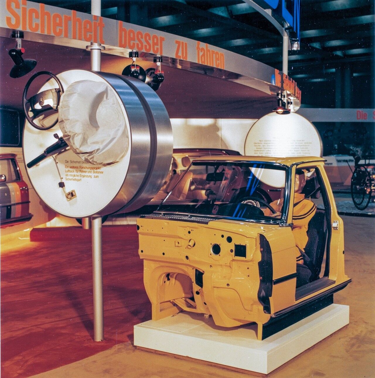 En marzo de 1981, la presencia de Mercedes en el Salón de Ginebra de aquel año destacó por encima de la del resto de fabricantes con la presentación del primer airbag del conductor, la innovación que mayor seguridad pasiva ha aportado al automóvil después de la invención del cinturón de seguridad. Apenas 6 años después, en septiembre de 1987, el Salón de Frankfurt fue testigo de la presentación, también en el stand de la marca de la estrella, del primer airbag para el acompañante. La nueva Clase S, el modelo de la serie 124 que se presentaba aquel año, introducía en su guantera el primer colchón de aire salvavidas para el acompañante del conductor. Mercedes-Benz introduciría el airbag del acompañante como elemento de serie en el equipamiento de todos los modelos de su gama a partir de 1994.