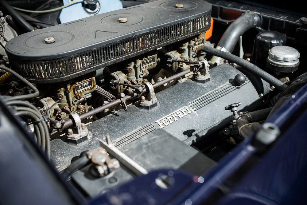 Su dueño inglés, que tenía un Aston Martin, se quedó tan prendado del coche que lo utilizó como vehículo personal durante una década, para viajar al sur de Francia con su familia (viajarían con poco equipaje). Después lo vendió y su dueño actual lo ha tenido 18 meses, un tiempo en que lo pintó con el color Ferrari Blu Pozzi (una hermosa tonalidad negro azul que cambia en función de las diferentes condiciones de luz) y lo restauró por completo.