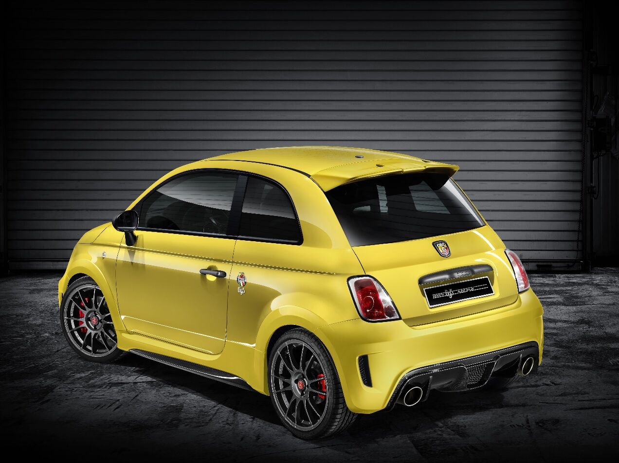 De esta manera se incrementa aún más el carácter deportivo de este pequeño pero matón. Se trata de un auténtico juguete que ofrece unas prestaciones muy divertidas, con su motor de 190 CV y sus escasos 997 kg, este Abarth alcanza los 250 km/h y ofrece una relación peso – potencia de 5,2 kg/CV. El cambio consta de cinco velocidades manuales para poder «jugar», unido a una dirección con calibrado deportivo. Además cuenta con unos amortiguadores Xtreme Shox regulables en altura.