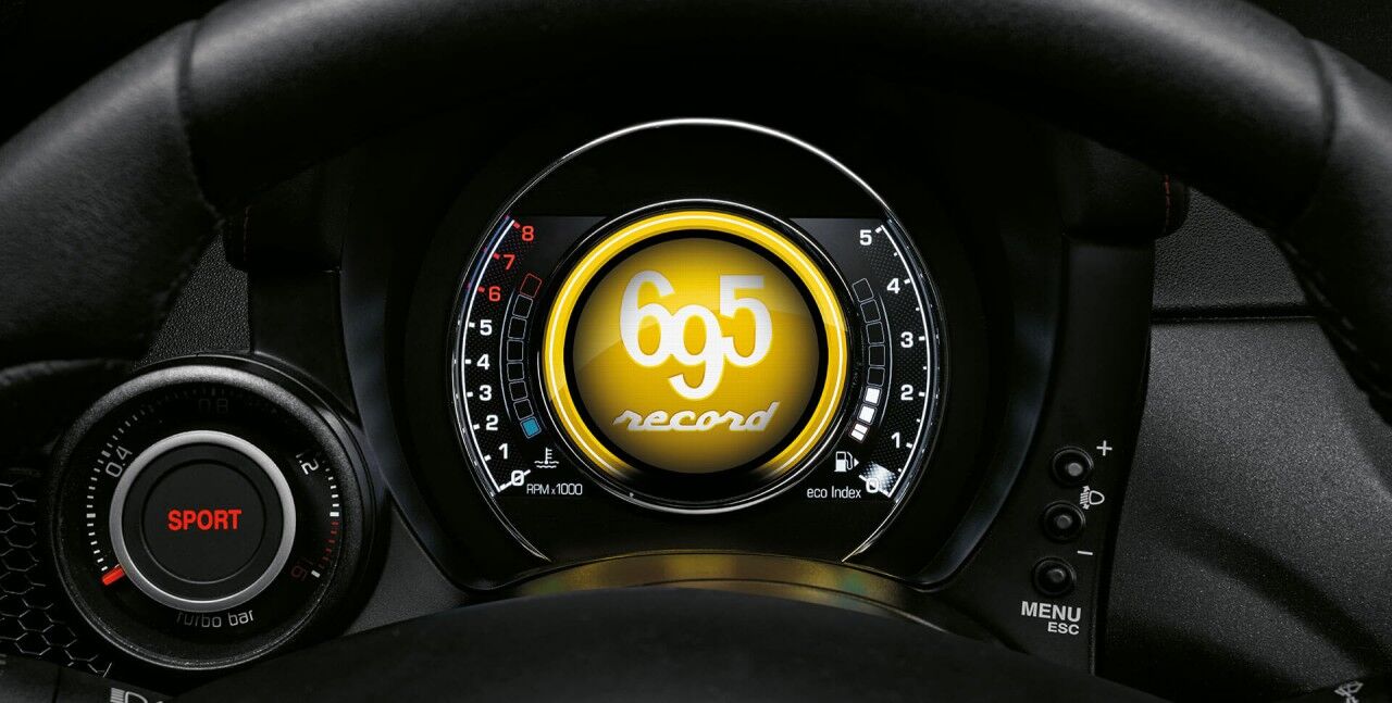 Ésta nueva máquina parte de la base del Abarth 695 biposto, al que se le equipa de elementos como el diferencial autoblocante mecánico, el capó de aluminio, animación en la pantalla TFT 695 Record, alerón sobredimensionado, asientos con respaldo de fibra de carbono, color amarillo Módena, entre otros.