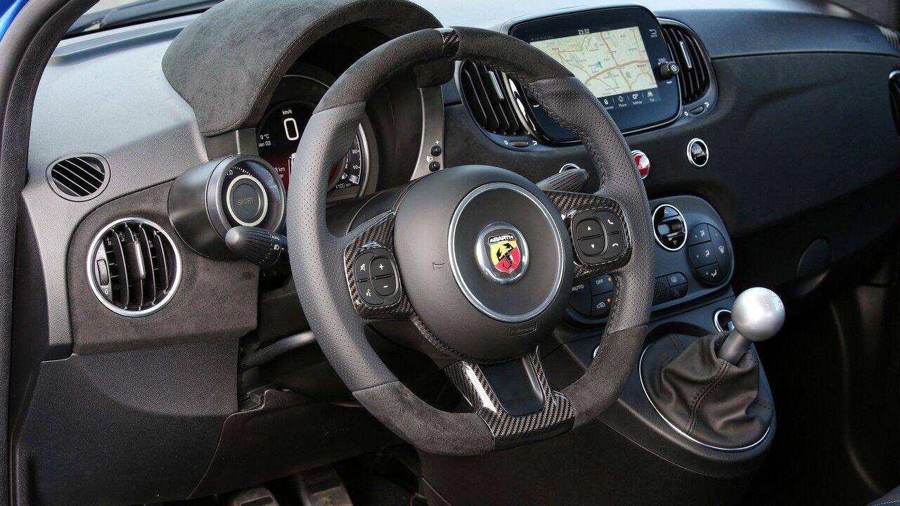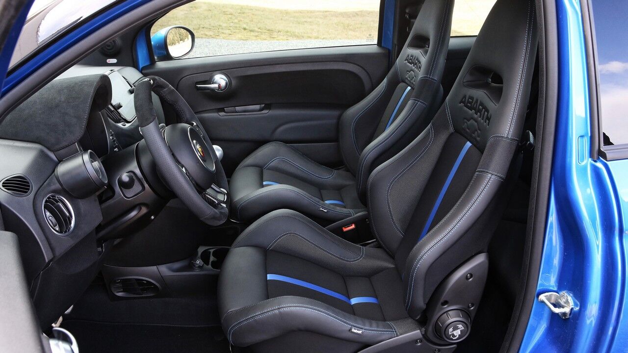 Tomando como punto de partida el Fiat 500 de la generación previa, el atuendo de la firma del escorpión destaca por una apariencia única. Un nuevo tono de pintura de tres capas, llamado “Blue Rally”, es una interpretación moderna del color original. Tanto el techo como los pilares y otros detalles, por su parte, están pintados en “Scorpion Black”. Para aquellos que prefieren un solo tono, se puede obtener en “Rally Blue” o “Record Grey”. Y a bordo podemos disponer de un salpicadero de Alcántara y asientos de tela Sabelt con inserciones y costuras azules.