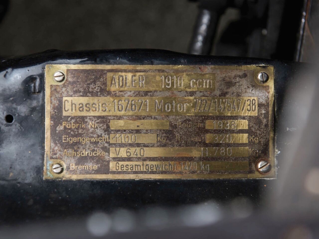 Aunque se desconoce qué ocurrió con el coche durante la Segunda Guerra Mundial, la suerte quiso que volviese a aparecer en 1955 en Ansbach, en el norte de Baviera. Había sido algo modificado para circular por la calle con mayor facilidad (parachoques, luces antiniebla)... Luego el coche pasó a Estados Unidos, donde fue cambiando de manos hasta que en 1994 fijó su hogar en la colección europea de la Blackhawk Collection. Así acabó uno de los tres Adler Trumpf Rennlimousine que sobrevivieron a la guerra en California. Perfectamente restaurado, con muchos de sus paneles de carrocería originales y el número de chasis bien visible, como mandan los cánones de los coches clásicos.
