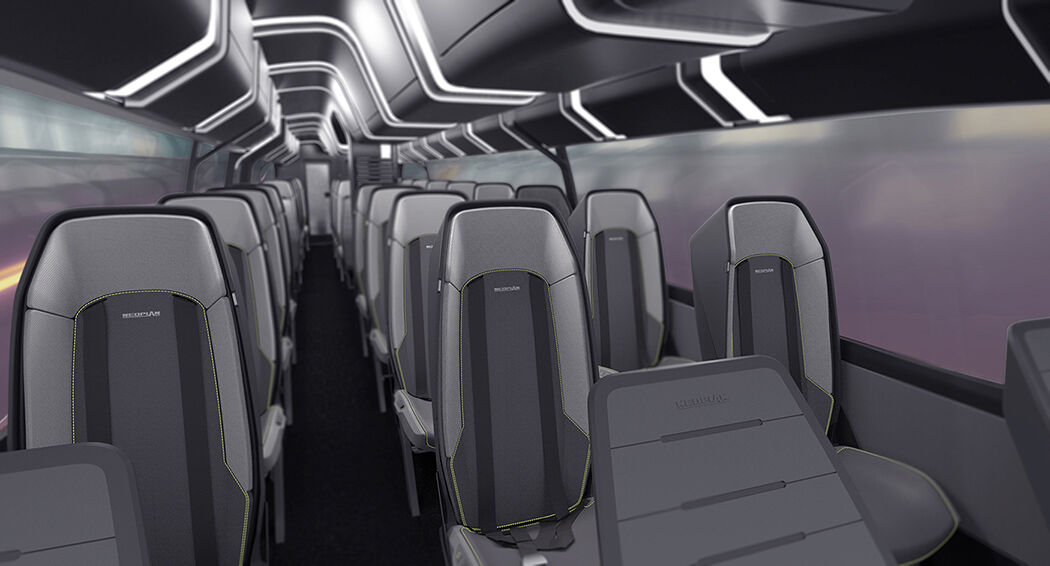 El interior del autobús es del estilo de un jet privado, todo un lujo. Los pasajeros tendrán la posibilidad de utilizar su tiempo de viaje de manera eficiente al trabajar o dormir con total comodidad durante el viaje.