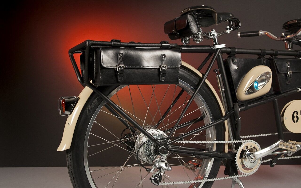 Utilizando piezas de motos antiguas y colocando baterías en la parte que iría destinada al motor, el resultado parece impecable y listo para rodar en cualquier momento. Además, los detalles de las bolsas de equipaje otorgan a cada una de las piezas automovilísticas un toque único y elegante. Dada la belleza y las pasiones que levantan, es de extrañar que aún no haya llegado a producirse a nivel internacional.
