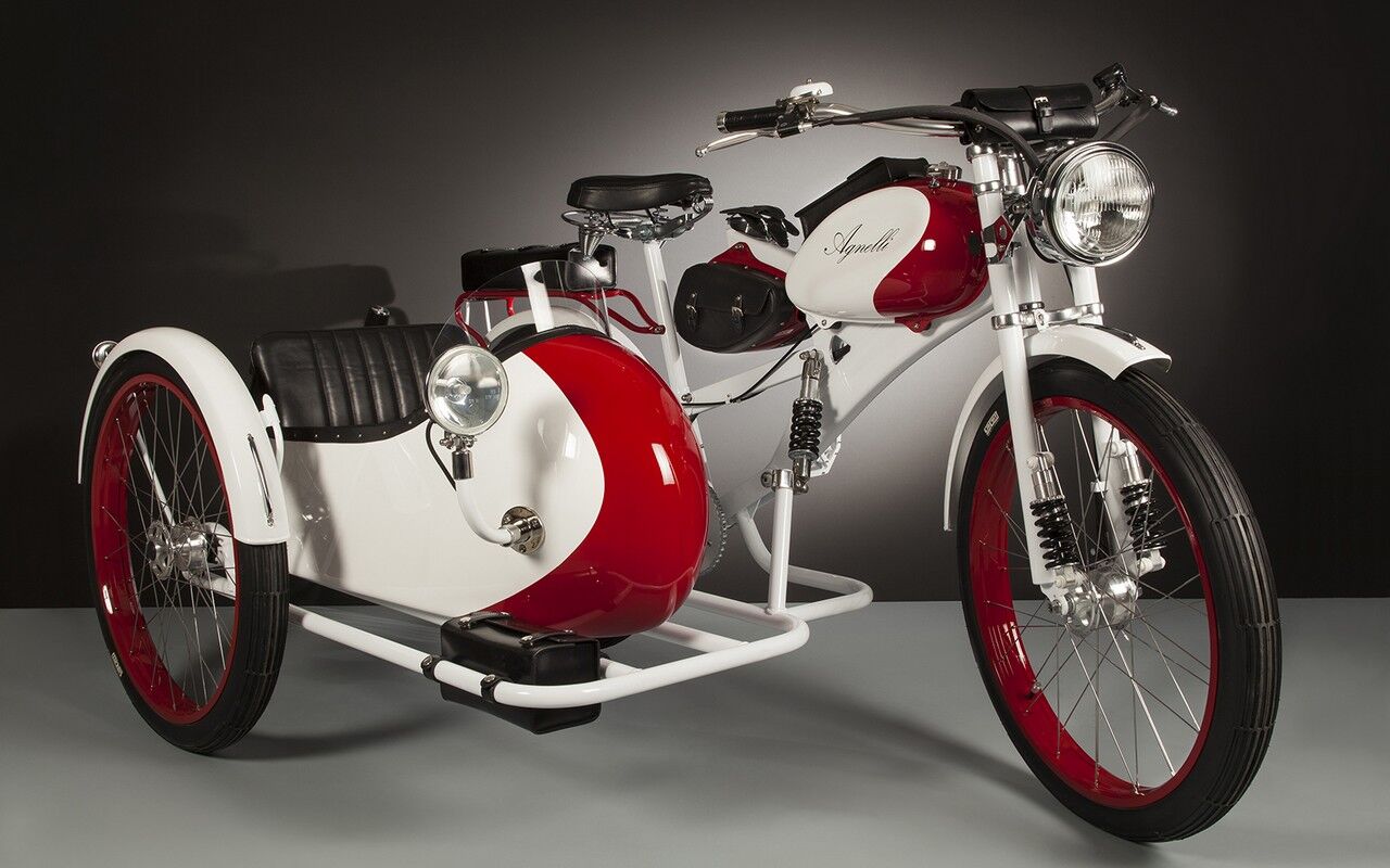 Afortunado de poder vivir de su pasión, Angelli no solo crea bicis monoplaza, la página web desde la que se puede observar todos los productos del italiano muestra bicicletas eléctricas para dos personas e incluso bici con sidecar como la que se observa en la imagen.