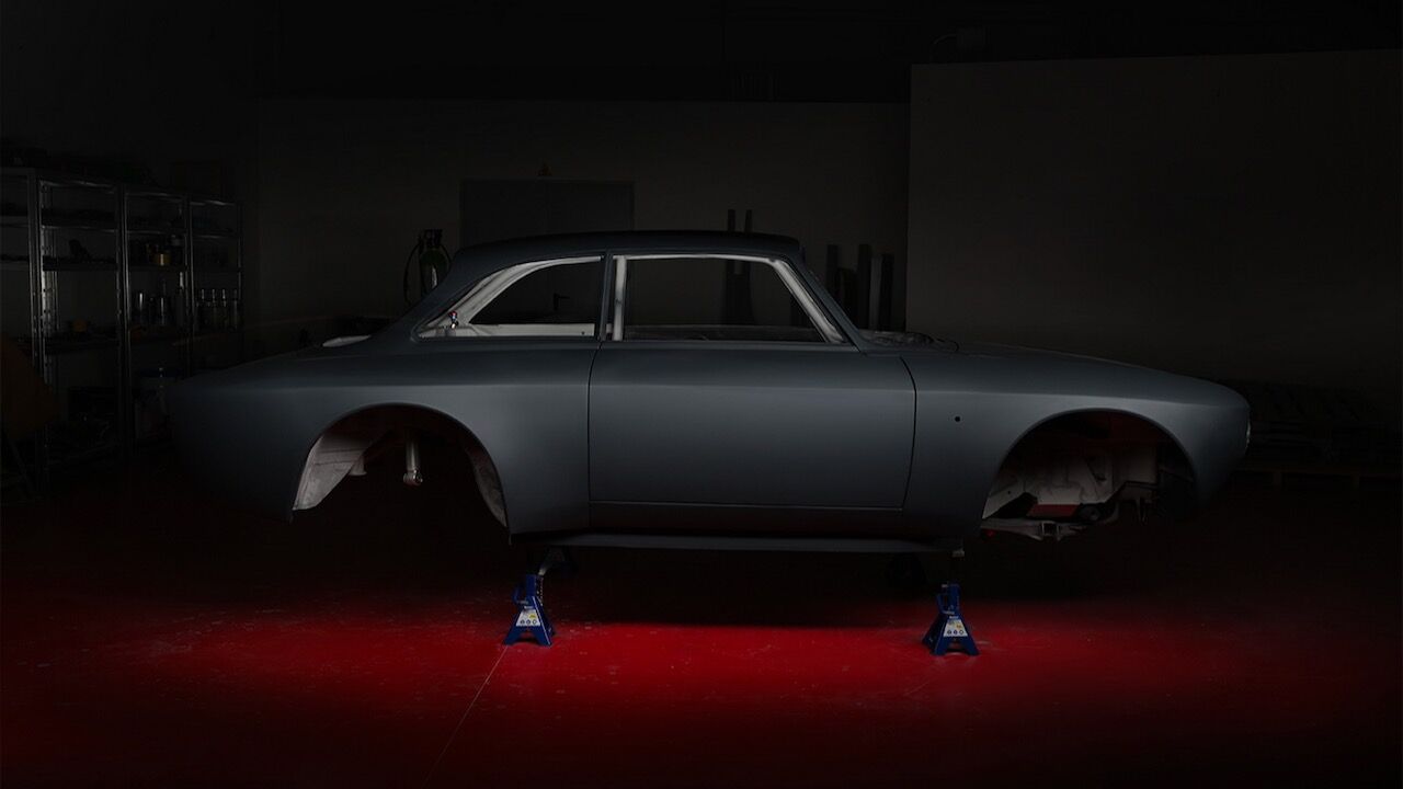 La carrocería también ha sido rehecha por completo en fibra de carbono para mantener un peso lo más liviano posible. Se inspira en el Alfa Romeo Giulia GT original, aunque hay algunos modificaciones de lo más llamativas. Los faros redondeados cuenta con tecnología LED, lo mismo que los pilotos traseros. En el habitáculo pasará lo mismo, pues contará con una instrumentación digital, un sistema de infoentretenimiento de aspecto vintage y una nueva tapicería de cuero Nappa.