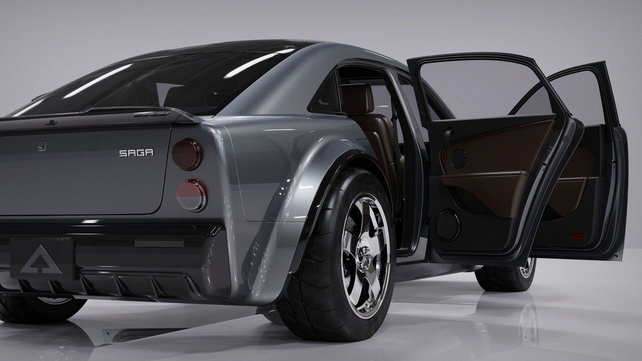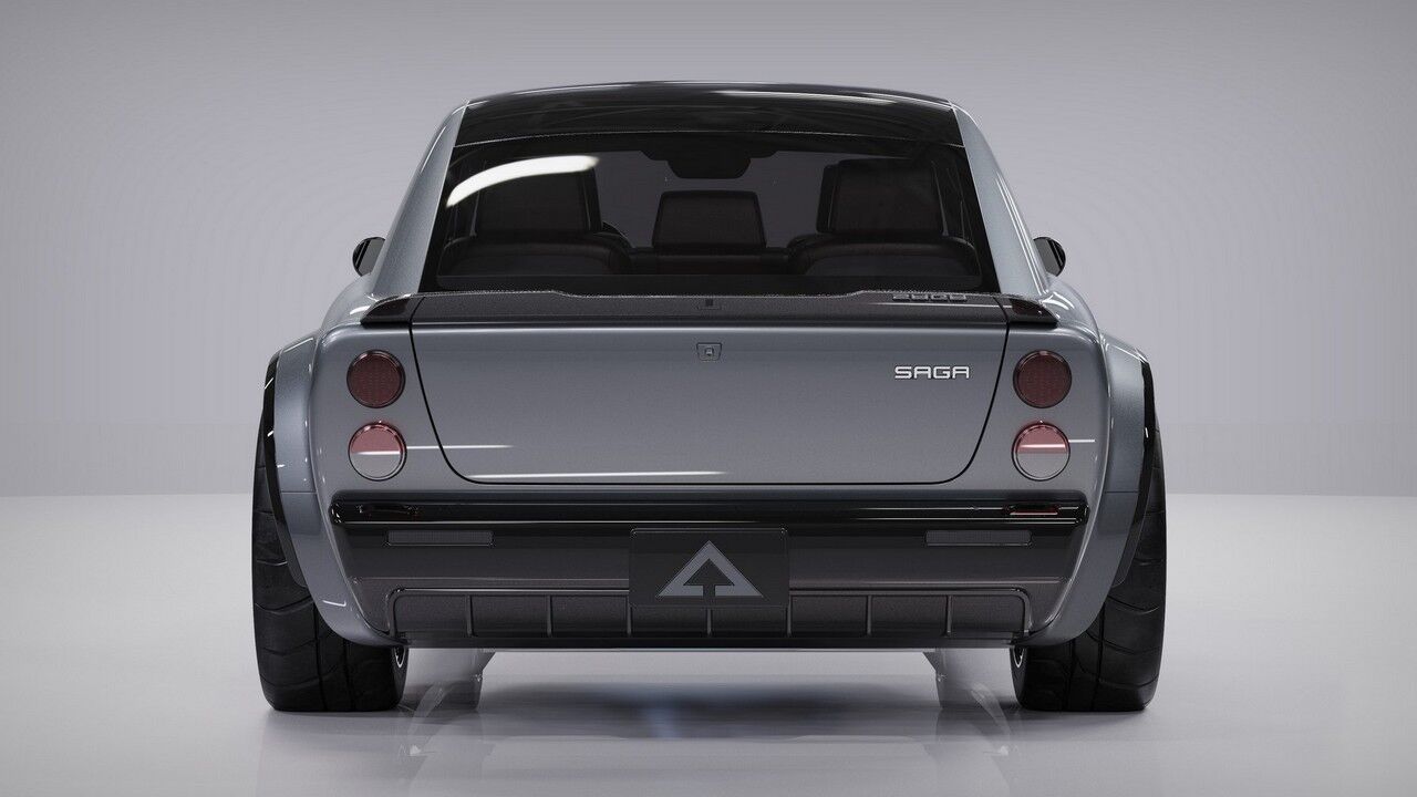 Sin embargo, si bien este último sigue la estela de la versión más deportiva con tintes off-road, el Alpha Saga busca un posicionamiento algo más tradicional y clásico. Como resultado, presenta un diseño familiar con una suave caída de techo hacia la zaga, unos hombros y pasos de rueda pronunciados, y unas manijas de las puertas empotradas. A pesar de las similitudes con el Ace, hay una serie de diferencias, ya que el Saga tiene un frontal único con faros cuádruples. El sedán también tiene otros parachoques, unas luces traseras circulares y un alerón de fibra de carbono.