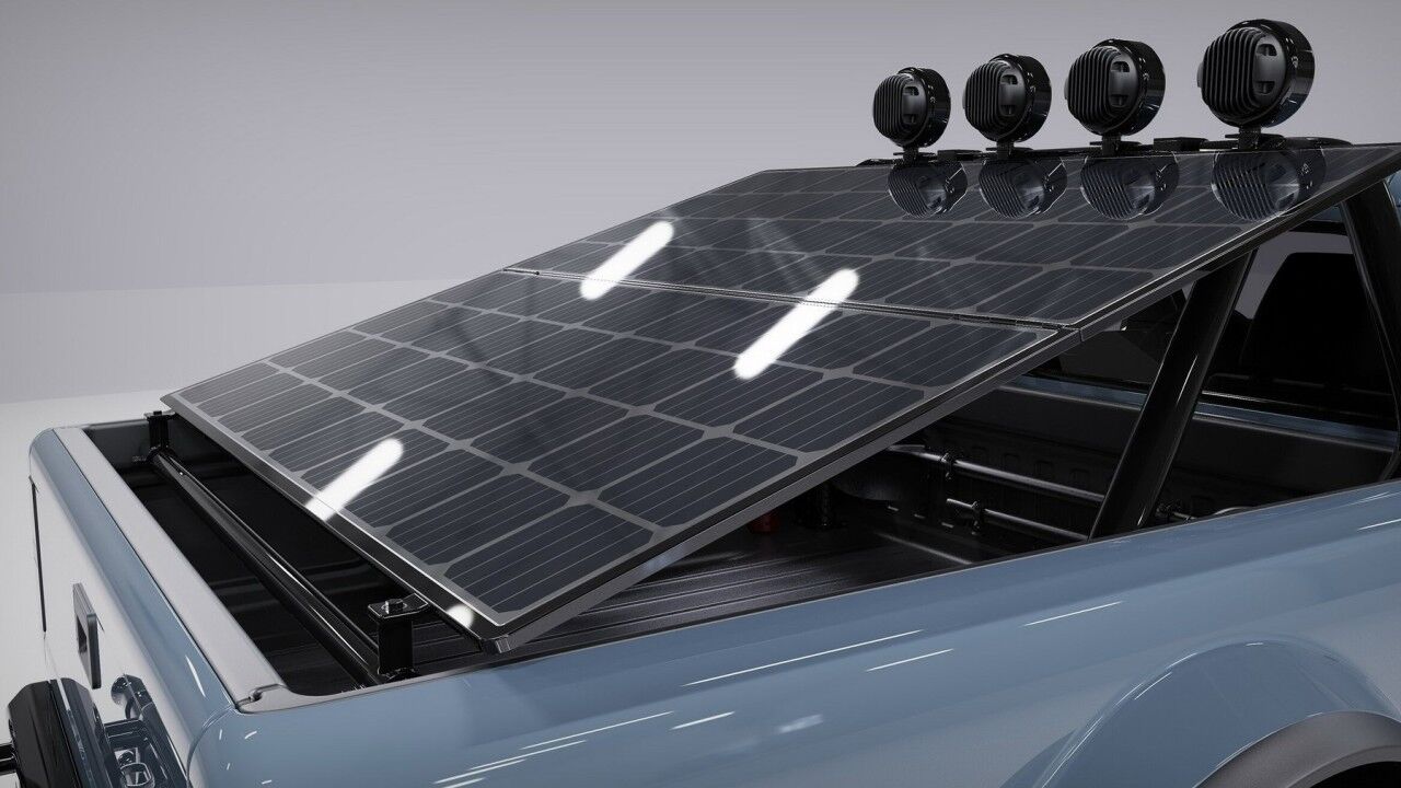 Las imágenes muestran un gran panel solar que cubre la plataforma de la pick-up. Aunque los detalles oficiales sobre esta función son escasos, podemos suponer que ayudará a cargar un poco la batería y los sistemas eléctricos de a bordo. Una batería que se podrá pedir bien en formato de 75 o de 85 kWh para conseguir una autonomía estimada de 450 kilómetros. Desconocemos sus prestaciones, pero sabemos alcanzará los 97 km/h desde parado en 6,2 segundos y tendrá tracción a las ruedas delanteras o a las cuatro.