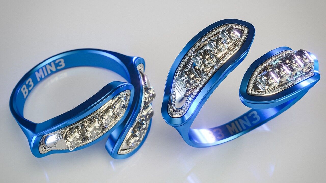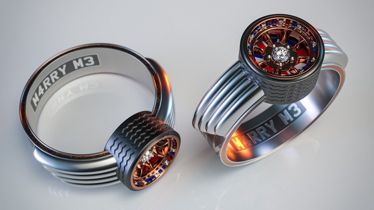 Describiendo un poco cada anillo, podemos decir que el que toma como musa al Ford Fiesta se basa en torno a una banda azul engastada con diamantes basados en los faros delanteros del urbano estadounidense. Si eres más fan del MINI Cooper, el anillo hace gala de piedras azules, blancas y rojas junto a un grabado de la bandera Union Jack. La base para el diamante central hace referencia a la clásica llanta de aleación “Minilight”, mientras que para el grabado interior se pueden aplicar grafías que replican la matrícula del popular modelo de Reino Unido.