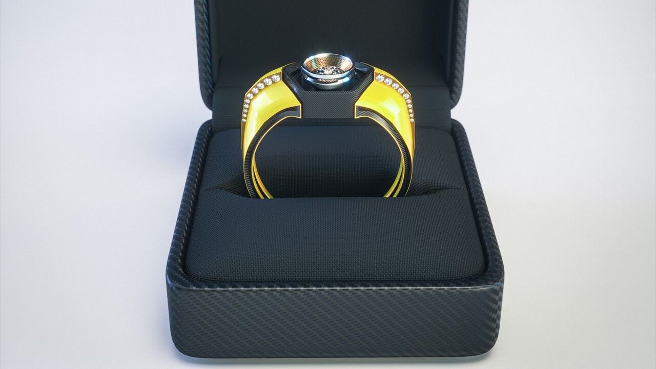 Por último, si quieres algo que destaque aún más (y por el que la gente te pregunte), tenemos el anillo inspirado en el Lamborghini Huracán. Al igual que el superdeportivo en el que se basa, seguramente te convertirás en la envidia de todos los que lo vean. Disponible tanto en amarillo chillón como en blanco hielo, el diamante central tiene la distintiva forma de la salida d escape del Huracán y está rodeado por detalles hexagonales de fibra de carbono. Los bordes del anillo son angulares y afilados, ideal para todos los amantes de los superdeportivos italianos.