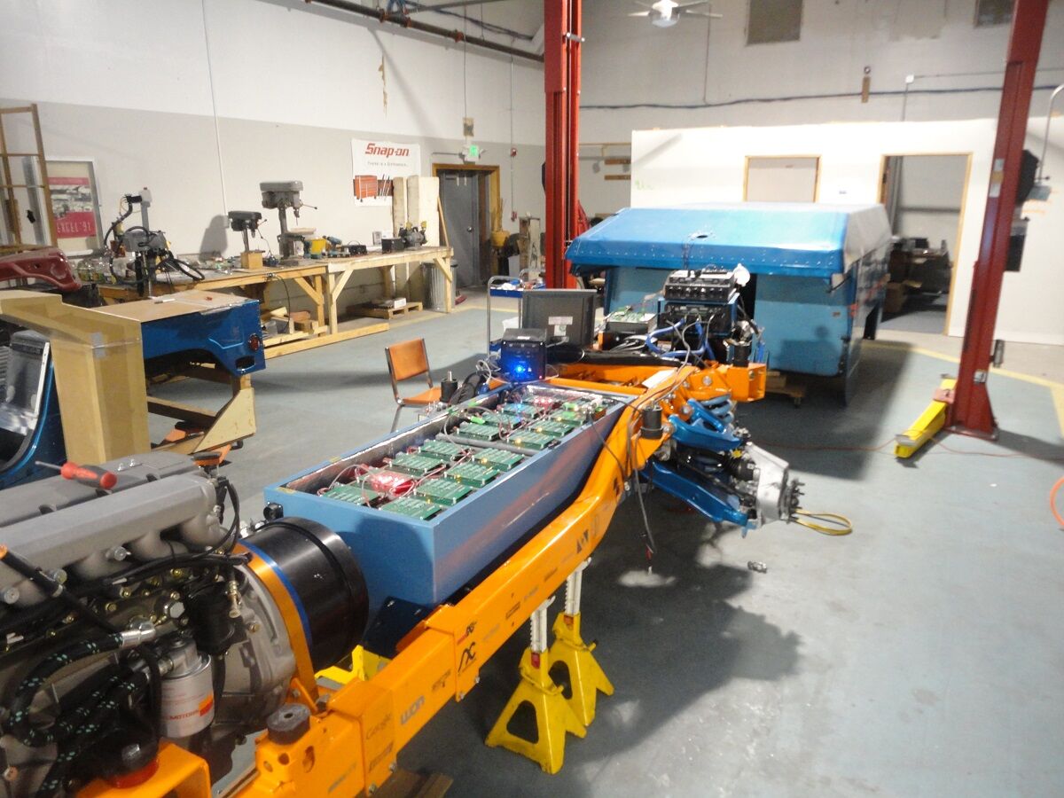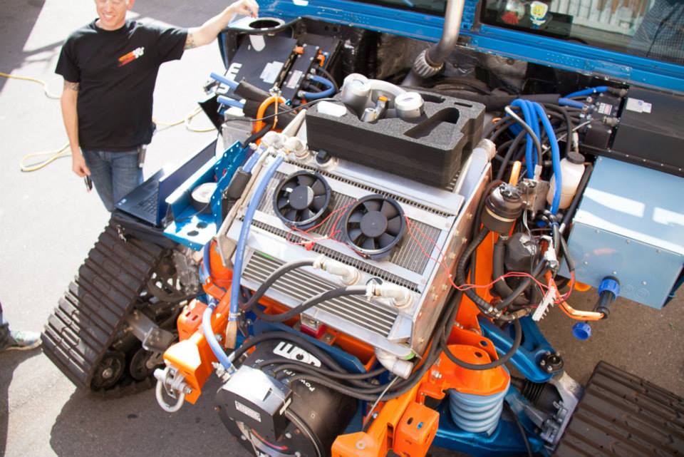 El equipo ha reemplazado los motores V8 originales por motores de 6 cilindros en línea con 218 CV que funcionan mediante biocombustibles. Además, han incorporado otros dos motores eléctricos de 200 CV en cada eje que van conectados a dos baterías que conforman dieciséis baterías de polímero de ion litio de 96 V, cada pack de batería responde a un eje. El sistema ha sido diseñado para resistir y funcionar a temperaturas de -50°C.