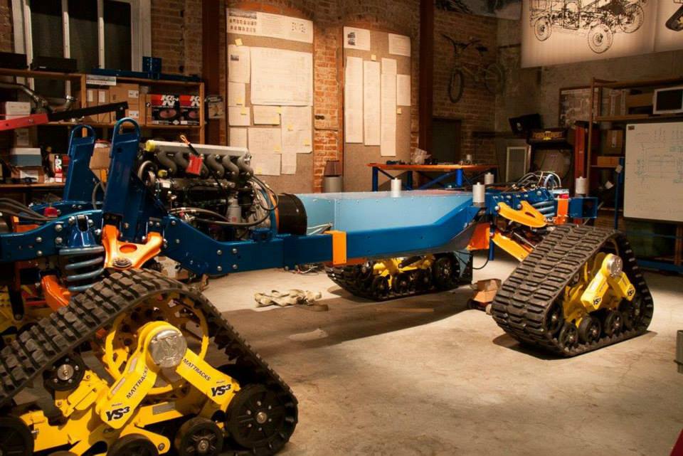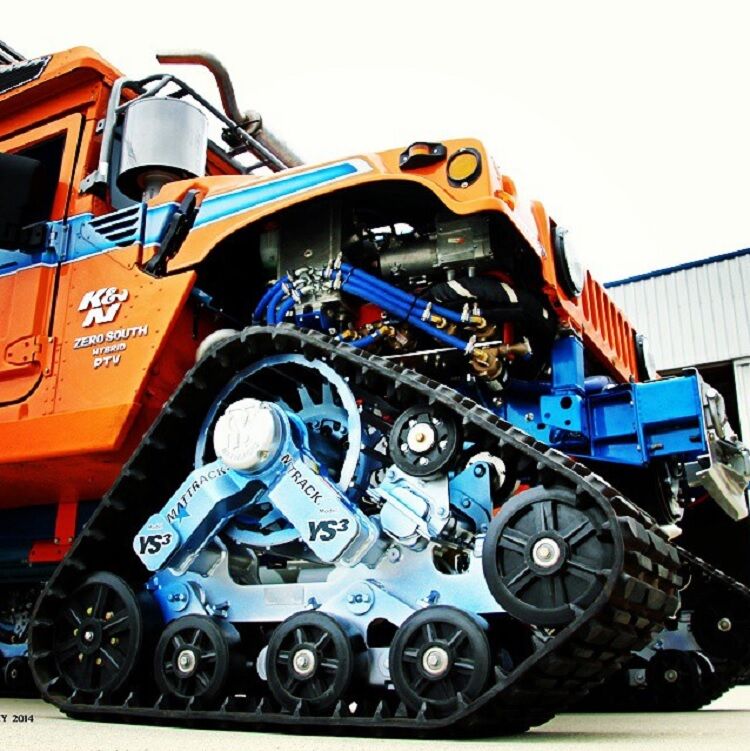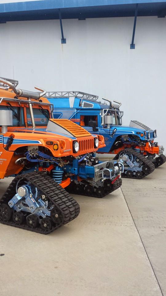 Los Hummer H1 originalmente eran una versión militar que cumplía labores sanitarias y de ambulancia en la guerra de Iraq. Se han mantenido chasis, carrocería y parte de los componentes. La modificación más vistosa es la sustitución de las ruedas por rodamientos de tracción de oruga. El resultado final es un par de Hummer H1 híbridos futuristas muy coloridos, como si fueran un par de Transformers.