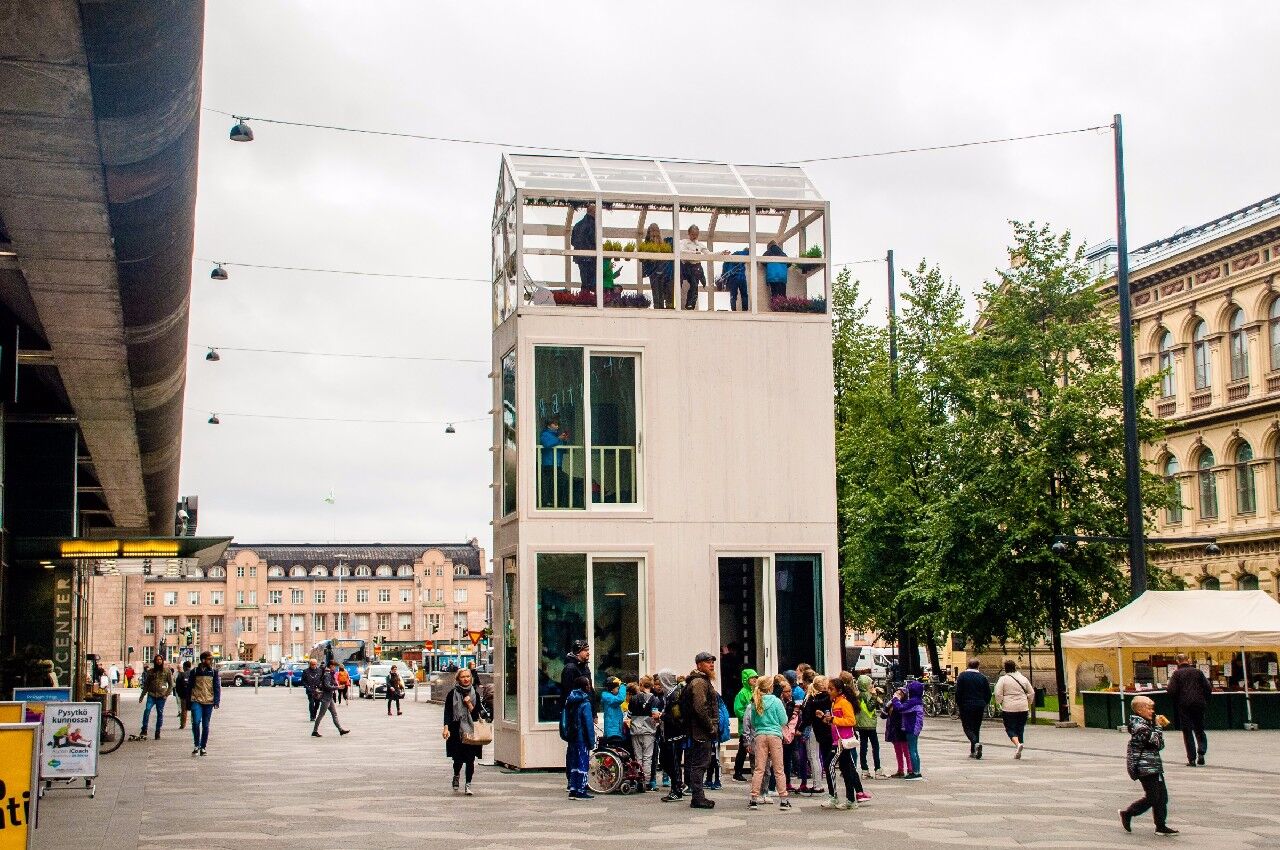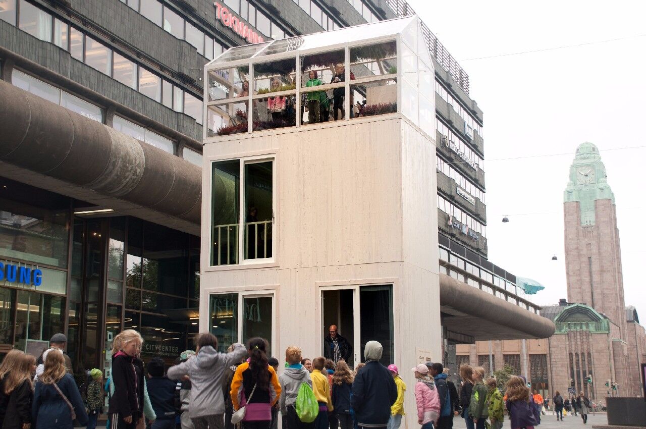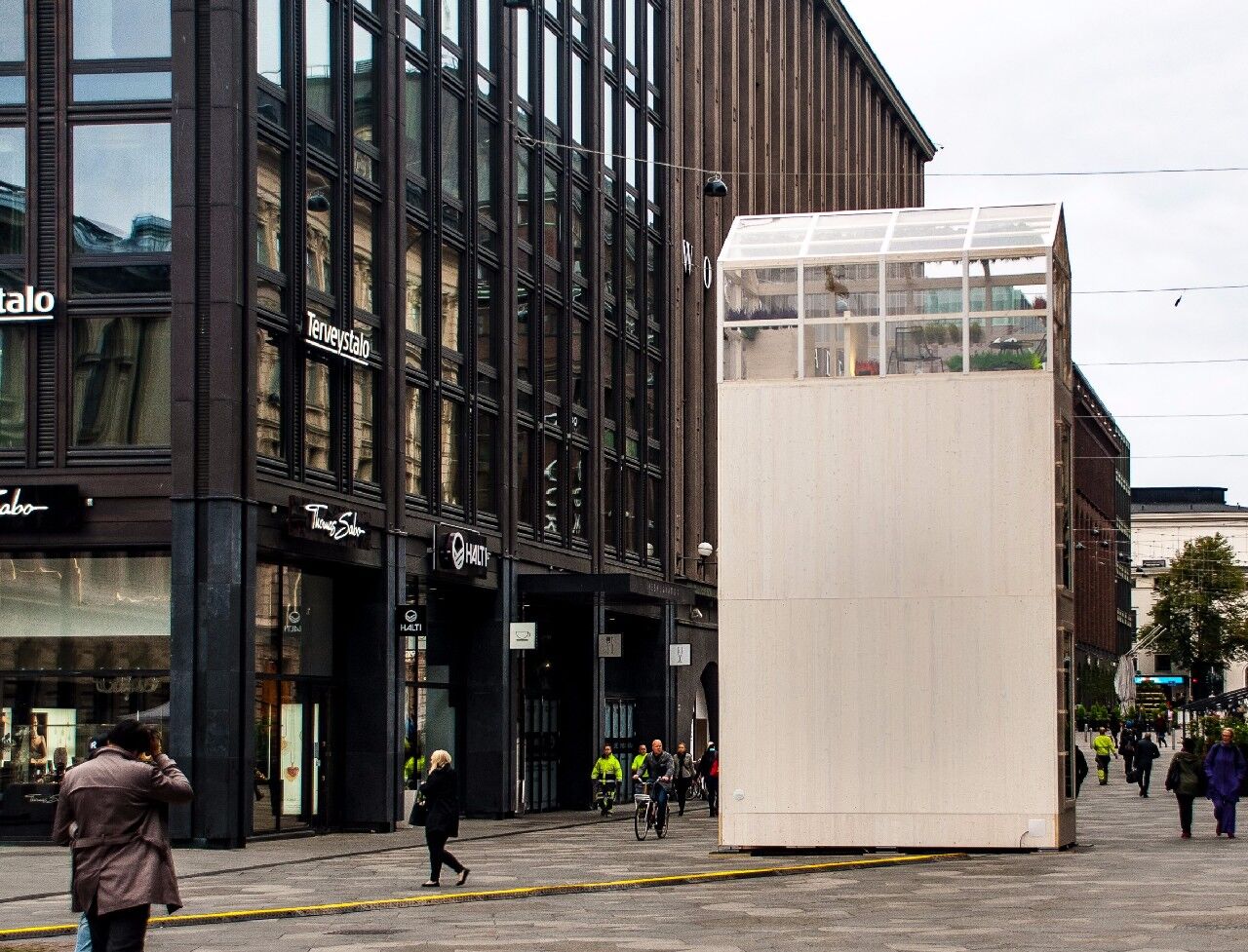 Esta singular casa ocupa lo mismo que una plaza de aparcamiento, tiene una planta de 2,5 metros de ancho y 5 metros de largo. La clave son sus tres alturas, que consiguen que el espacio habitable sea de 37,5 metros cuadrados. Sus creadores dicen que se puede instalar en cualquier sitio y en apenas unas horas. En esta ocasión se ha plantado en Atheneum, una zona céntrica de Helsinki, con motivo de la Design Week de la ciudad.