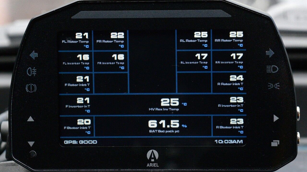 Afortunadamente, el último misil de Ariel viene con un control de tracción ajustable y gomas Michelin Pilot Sport Cup 2. Pero si la idea de lidiar con tanta potencia y par suena demasiado frenética, también existe la opción de un modelo de tracción en las ruedas traseras que genera 598 CV y 900 Nm, cifras mucho más modestas. El Hipercar extrae su energía de una batería de 800 W y 62 kWh que otorga 241 kilómetros de autonomía. Aunque ese número no es real al completo, ya que hay un extensor de autonomía desarrollado por Cosworth opcional.