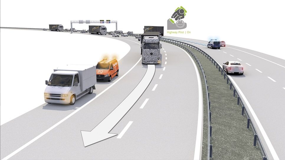 El sistema va más allá de un piloto automático (tipo control de crucero adaptativo), según nos cuentan desde Mercedes. Es inteligente y puede aprender del entorno y adaptarse a los cambios, teniendo en cuenta diferentes escenarios posibles y los vehículos que circulan junto a él. De este modo, si detecta que una ambulancia se aproxima a gran velocidad, por ejemplo, este camión autónomo podría apartarse a un lado de la carretera. La idea es que en el futuro pueda ejecutar estas y otras acciones de una totalmente independiente.