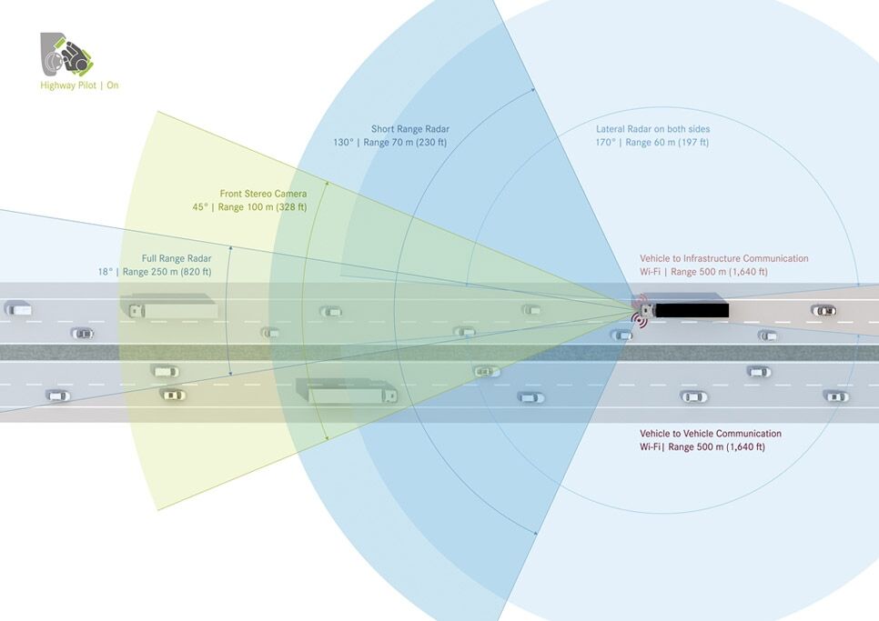 Por ahora, la idea no es que el camión conduzca solo en cualquier momento, sino que realice esta conducción pilotada e inteligente por vías rápidas y hasta velocidades de 85 km/h. De este modo, el camionero debería realizar las maniobras más complicadas, como aparcar y moverse en el ámbito urbano) y podría dejar que el camión circulase solo durante la conducción más tediosa.